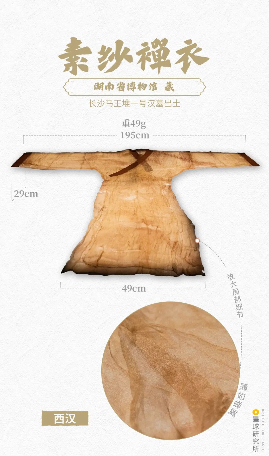 (出土的2000多年前的素纱襌衣被誉为国宝,曾被毁坏后又修复,摄影师@王瑞&卢鸣浪,制图@王申雯/星球研究所)