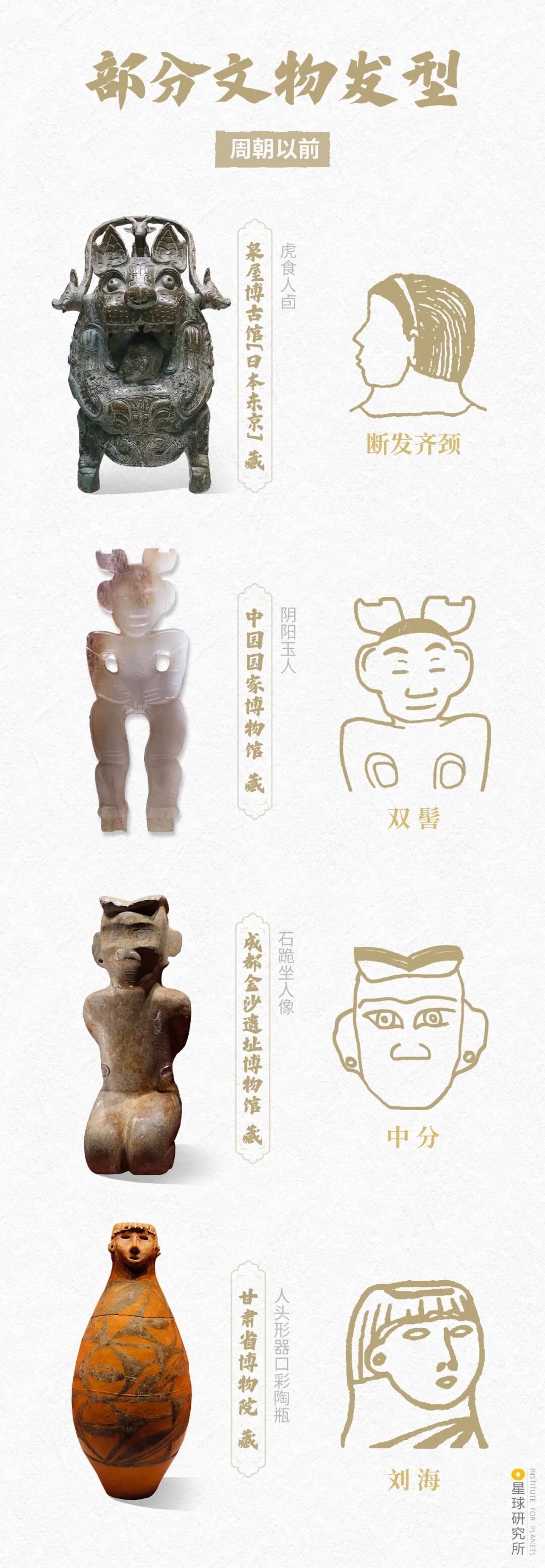 (部分文物发型示意,摄影师@动脉影&袁欢欢&张艳&龙世杰,制图@汉青&王申雯/星球研究所)