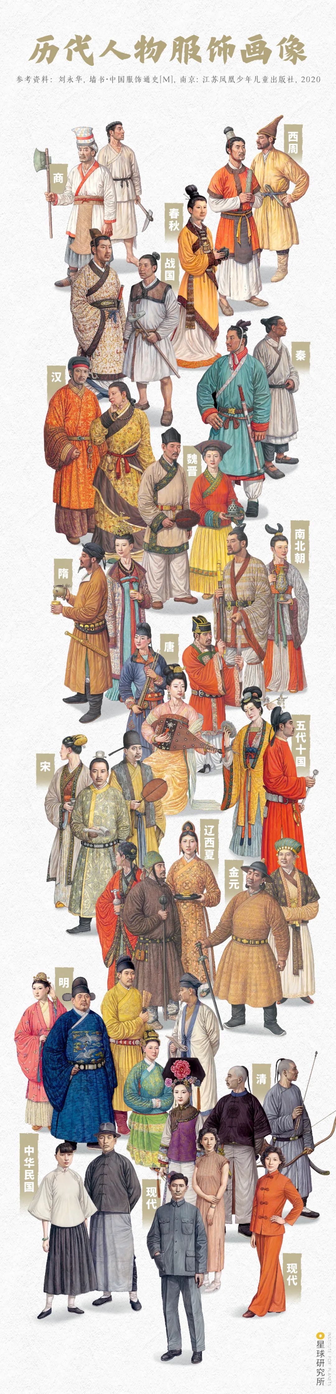 (历代人物服饰画像长图,绘画@刘永华,制图@汉青/星球研究所)