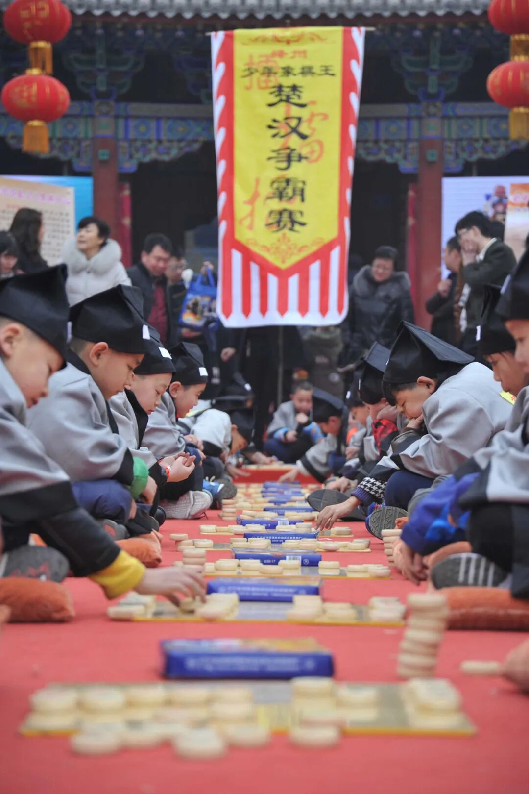 (2017年1月28日,山西运城举办“少年象棋王楚汉争霸赛”,“小棋王”们身着古装正在对弈,图片来源@视觉中国)