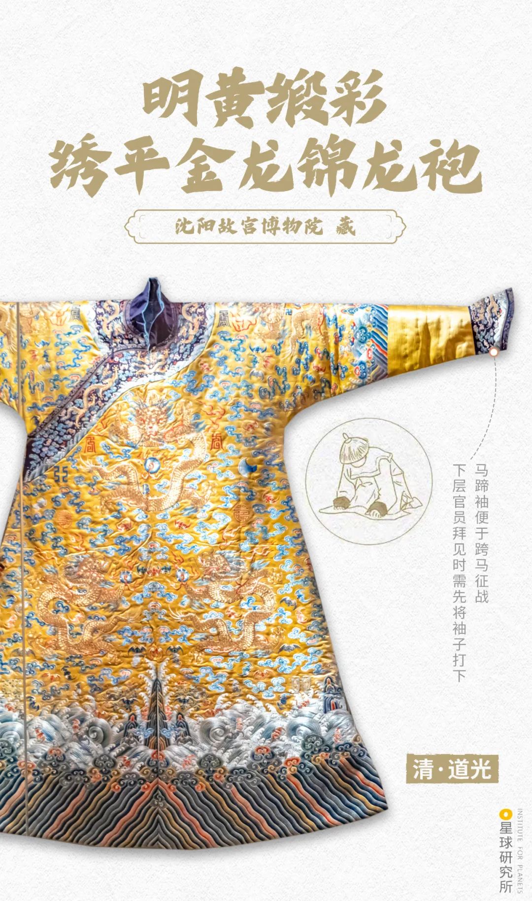 (明黄缎彩绣平金龙锦龙袍上的马蹄袖,摄影师@傅鸿超,制图@王申雯/星球研究所)