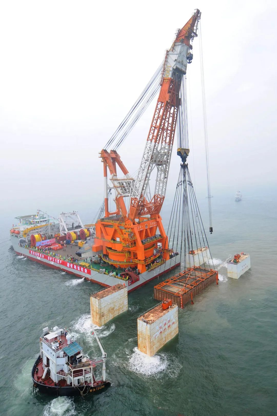 (“华天龙”号打捞现场照片,两艘代表着各自时代最先进技术的船舶,以这种方式见面了,图片来源@视觉中国)