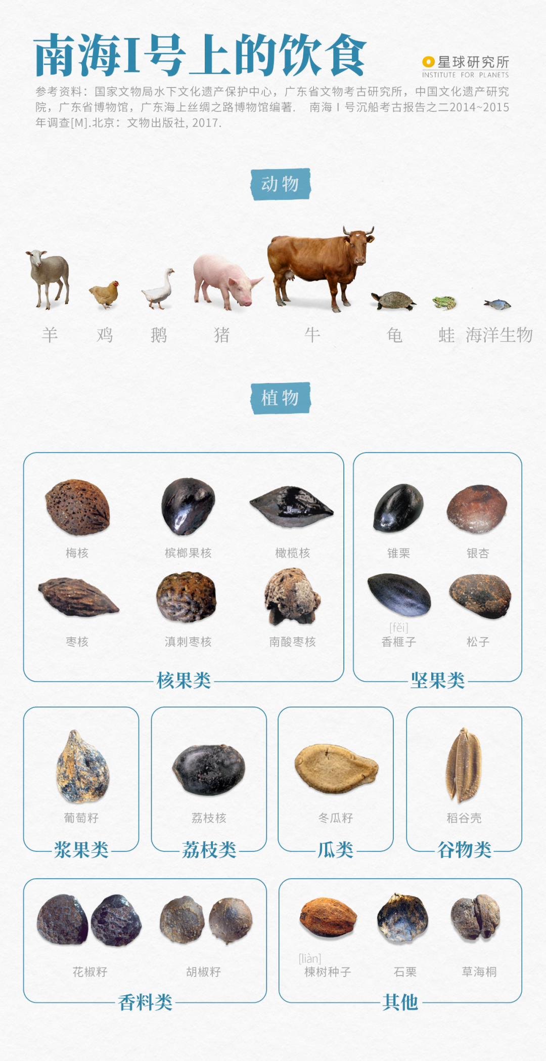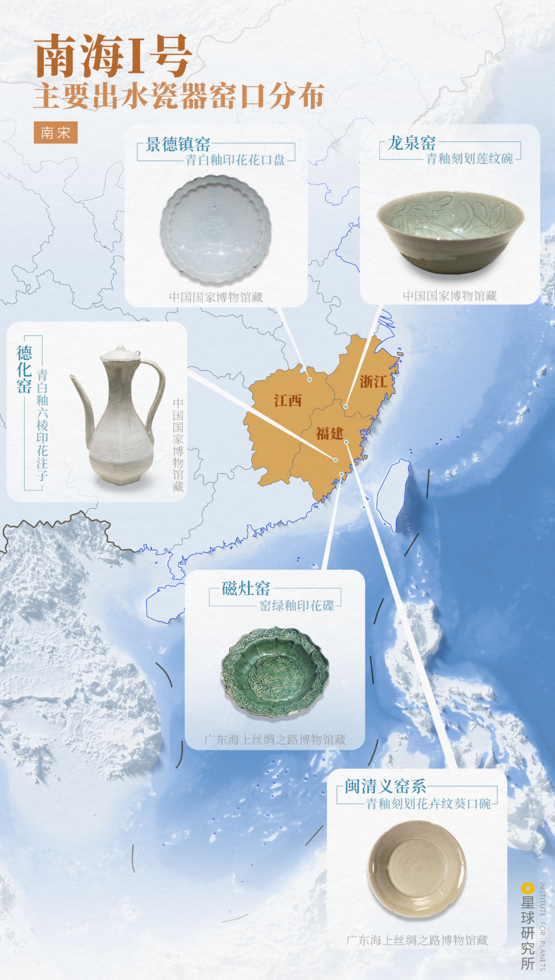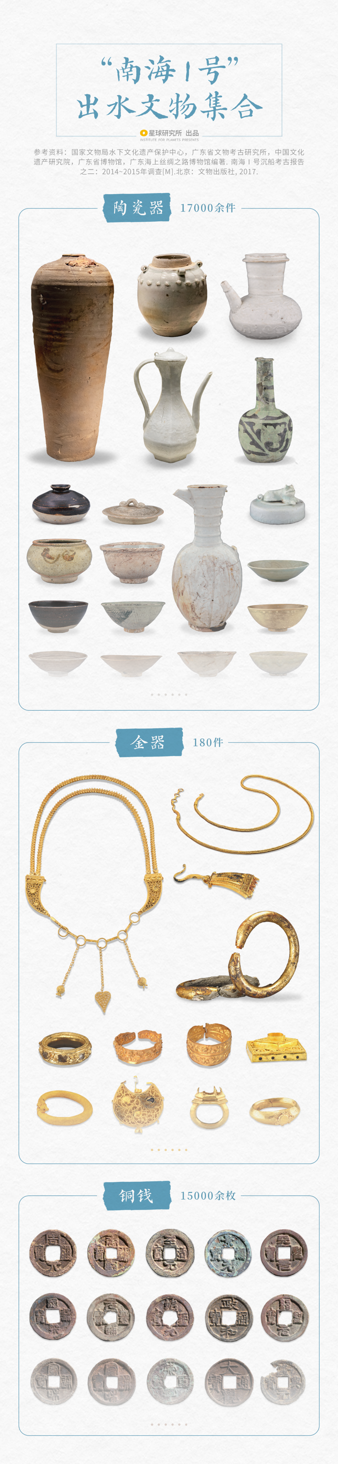 (“南海I号”出水文物集合,摄影师@李咸良、柳叶氘、广东海上丝绸之路博物馆、南海Ⅰ号沉船考古报告之二:2014~2015年调查(上、下),制图@汉青/星球研究所)