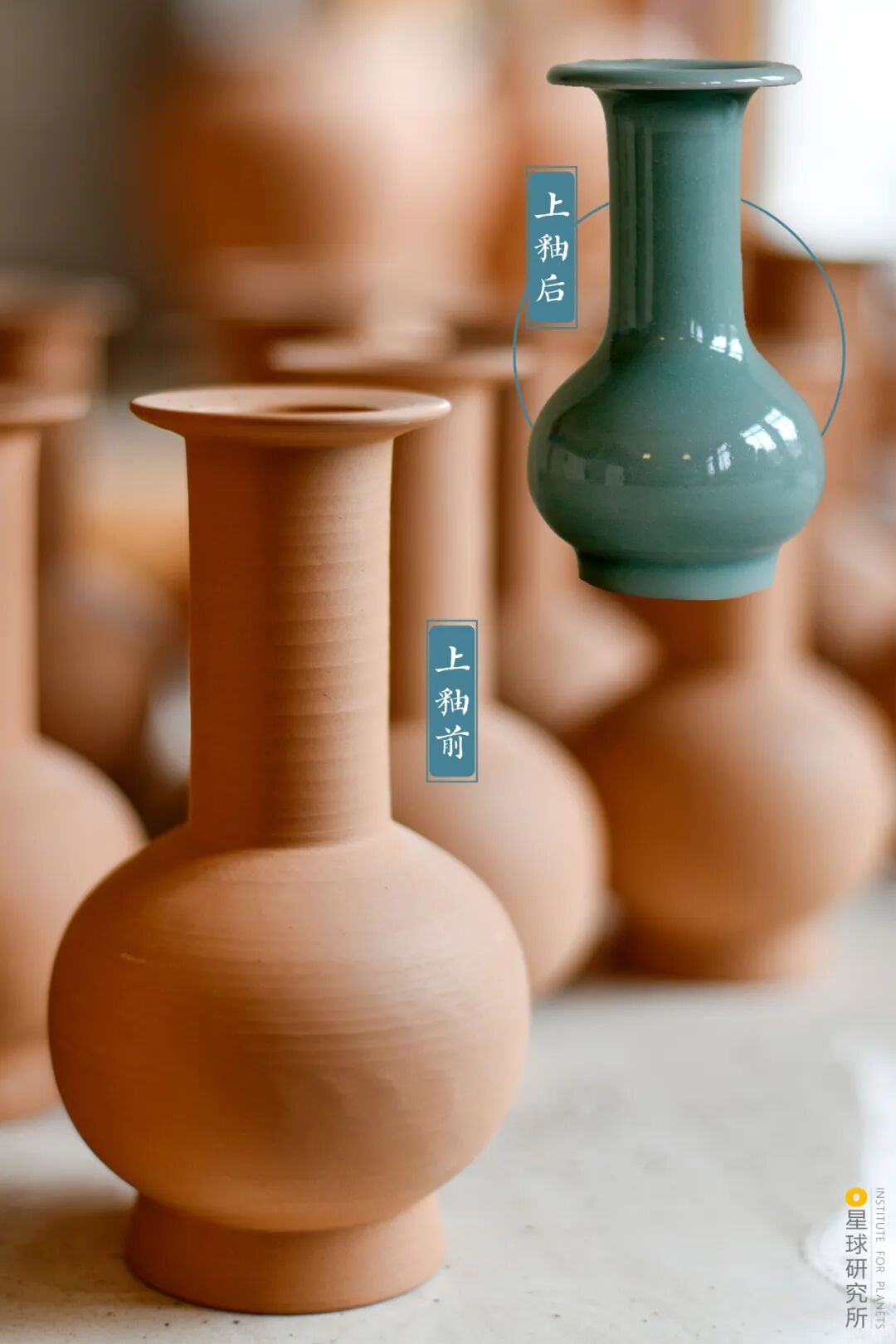 (上釉前后对比示意,标注@杨宁/星球研究所,摄影师@陆雨春)