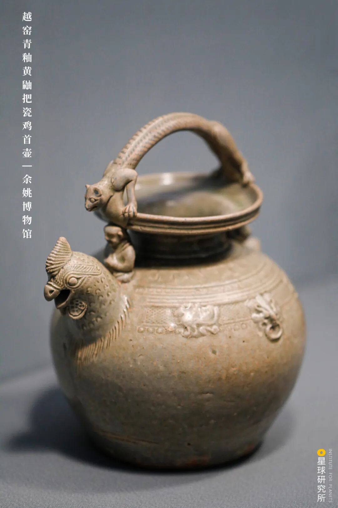 (西晋越窑青釉黄鼬把瓷鸡首壶,摄影师@杨虎)