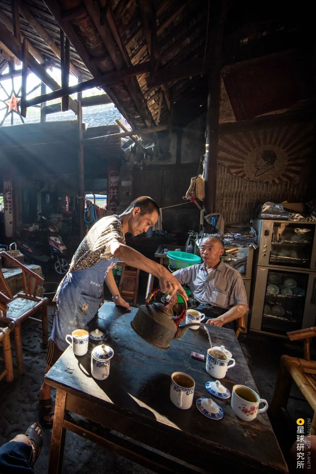 (藏民正在制作酥油茶,据说酥油茶经由印度传入英国,演变为风靡一时的英式奶茶;当然,也有一种说法认为英式奶茶是由荷兰商人从广州传入欧洲的,摄影师@丁嘉一)