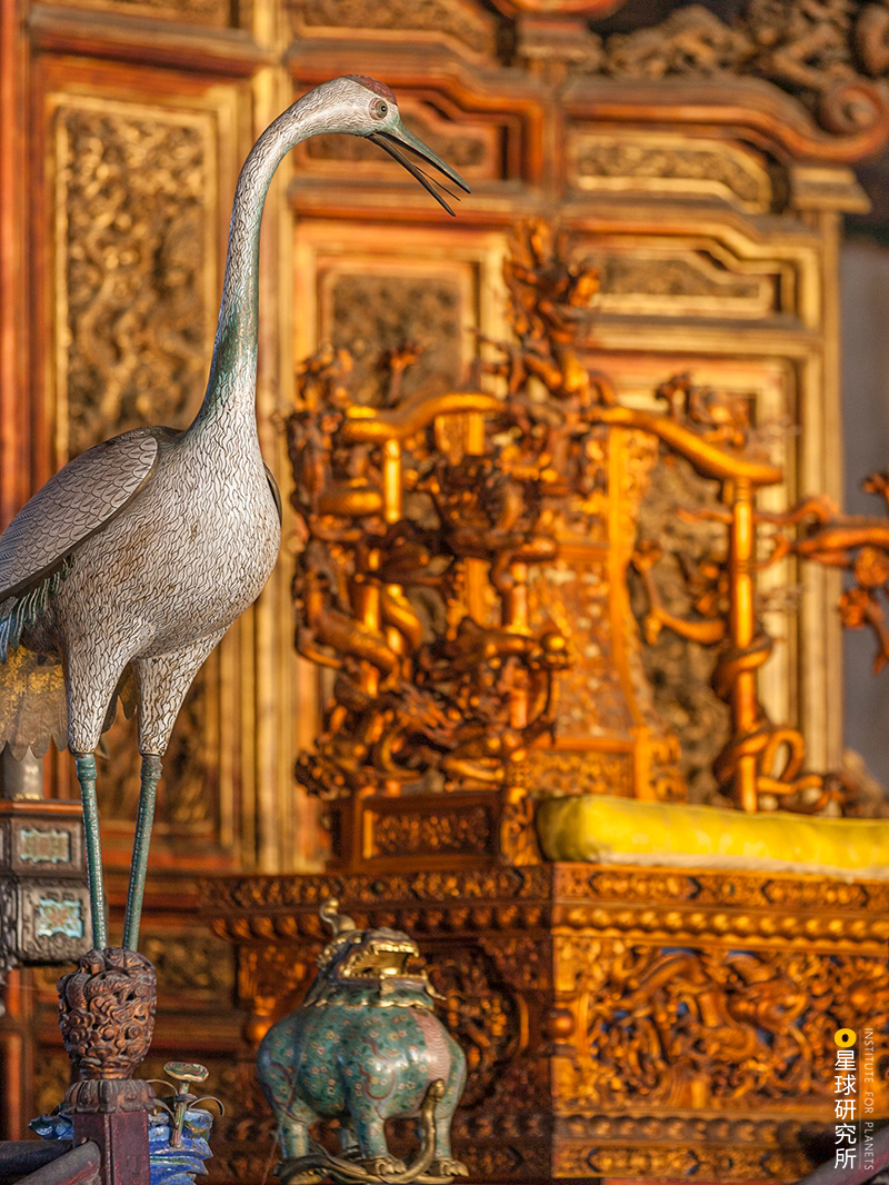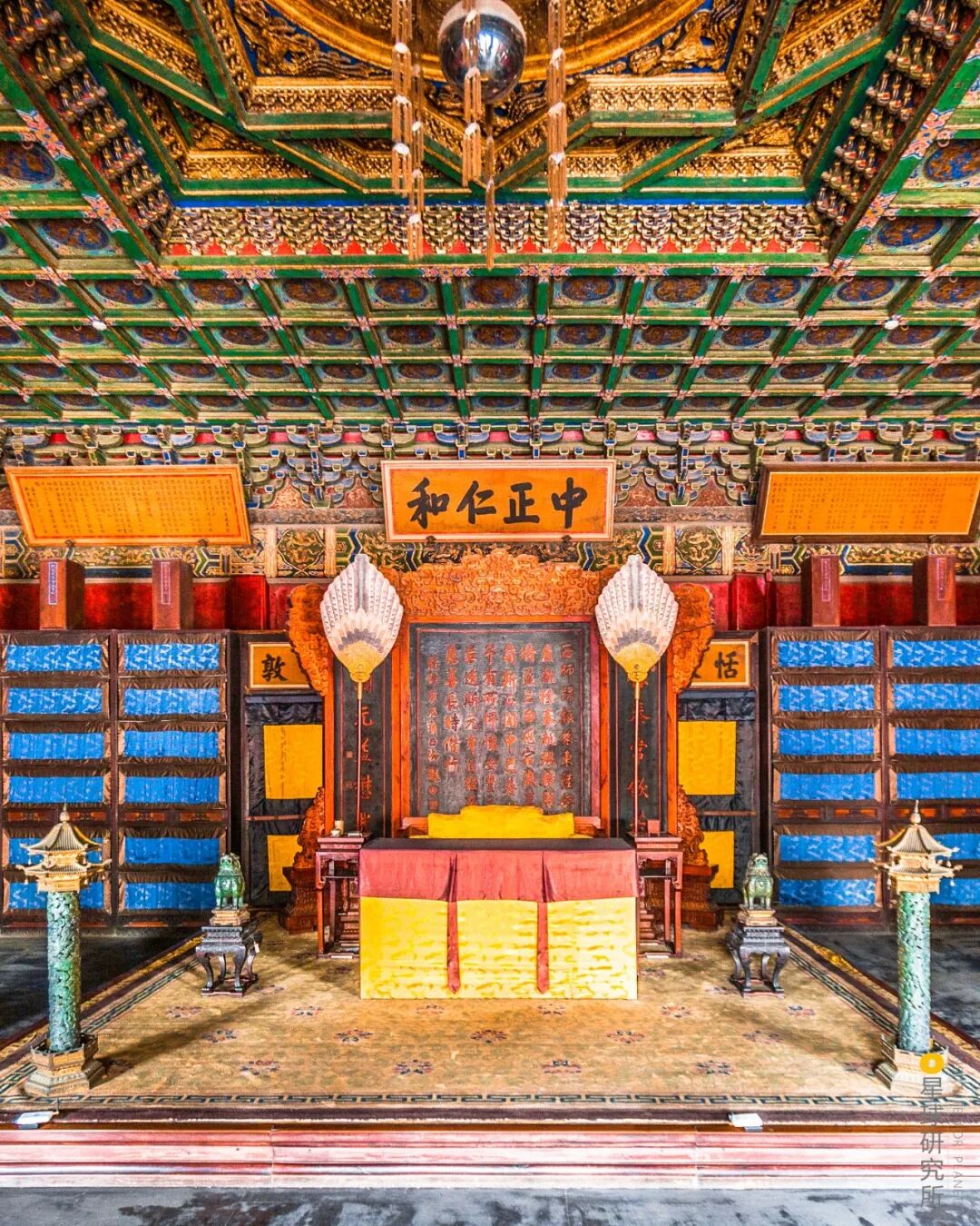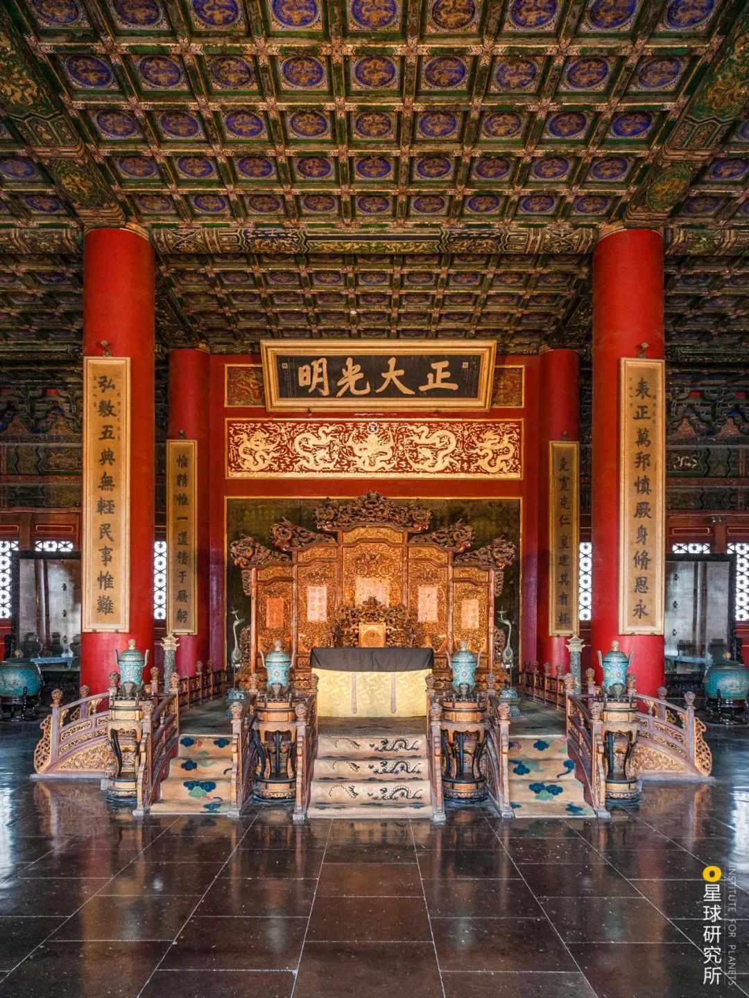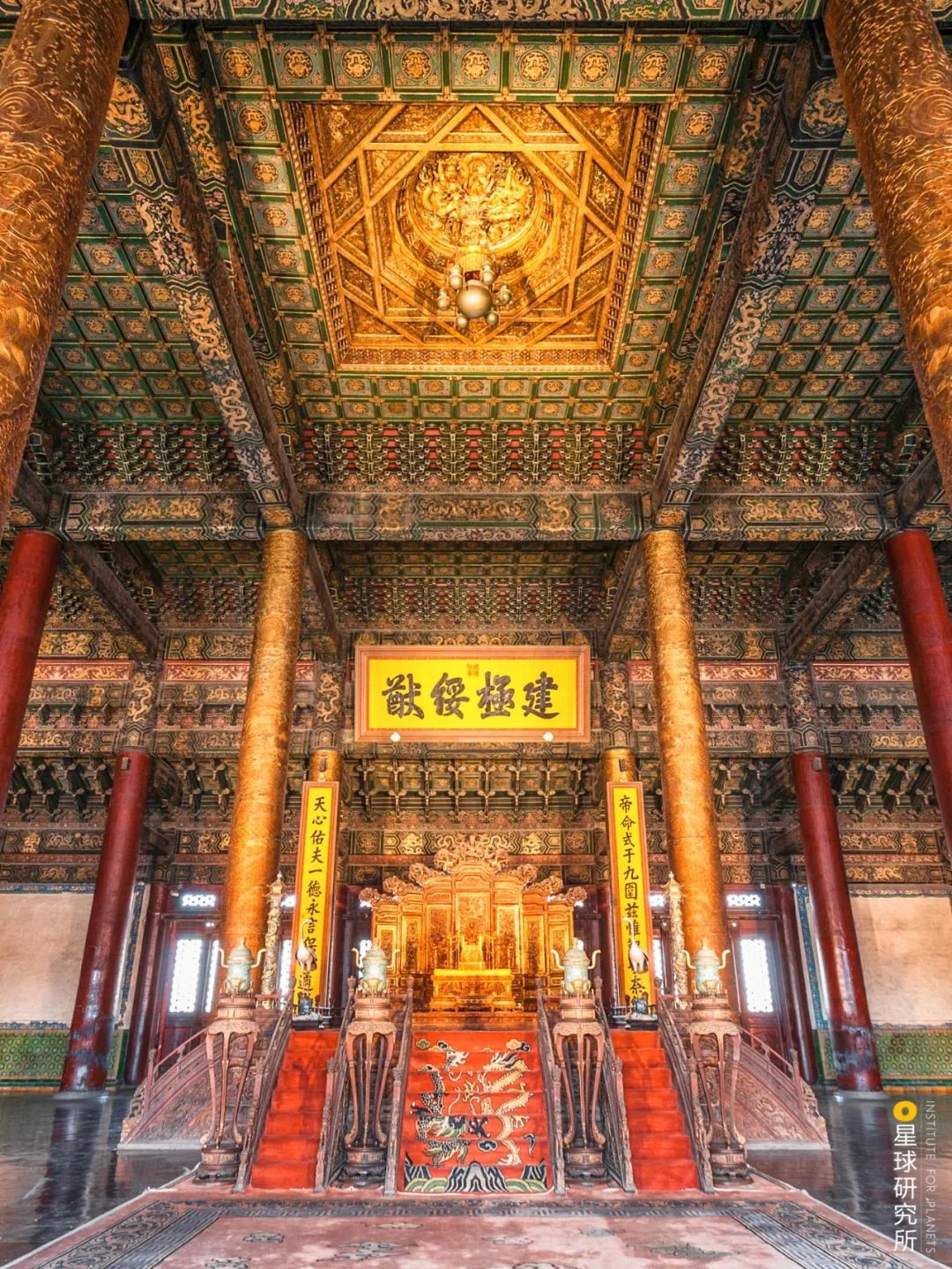 (太和殿中的金柱,最初为楠木柱,后来清代重修由于楠木稀少,而改为松木,摄影师@柳叶氘)