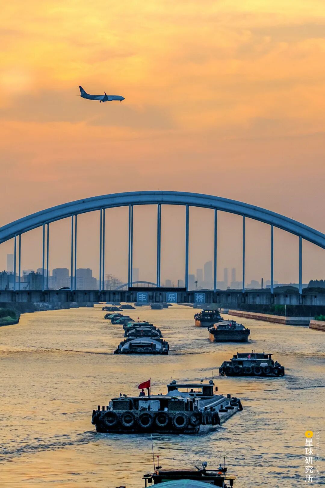 (京杭运河和宁杭高铁同框,摄影师@陈剑峰)