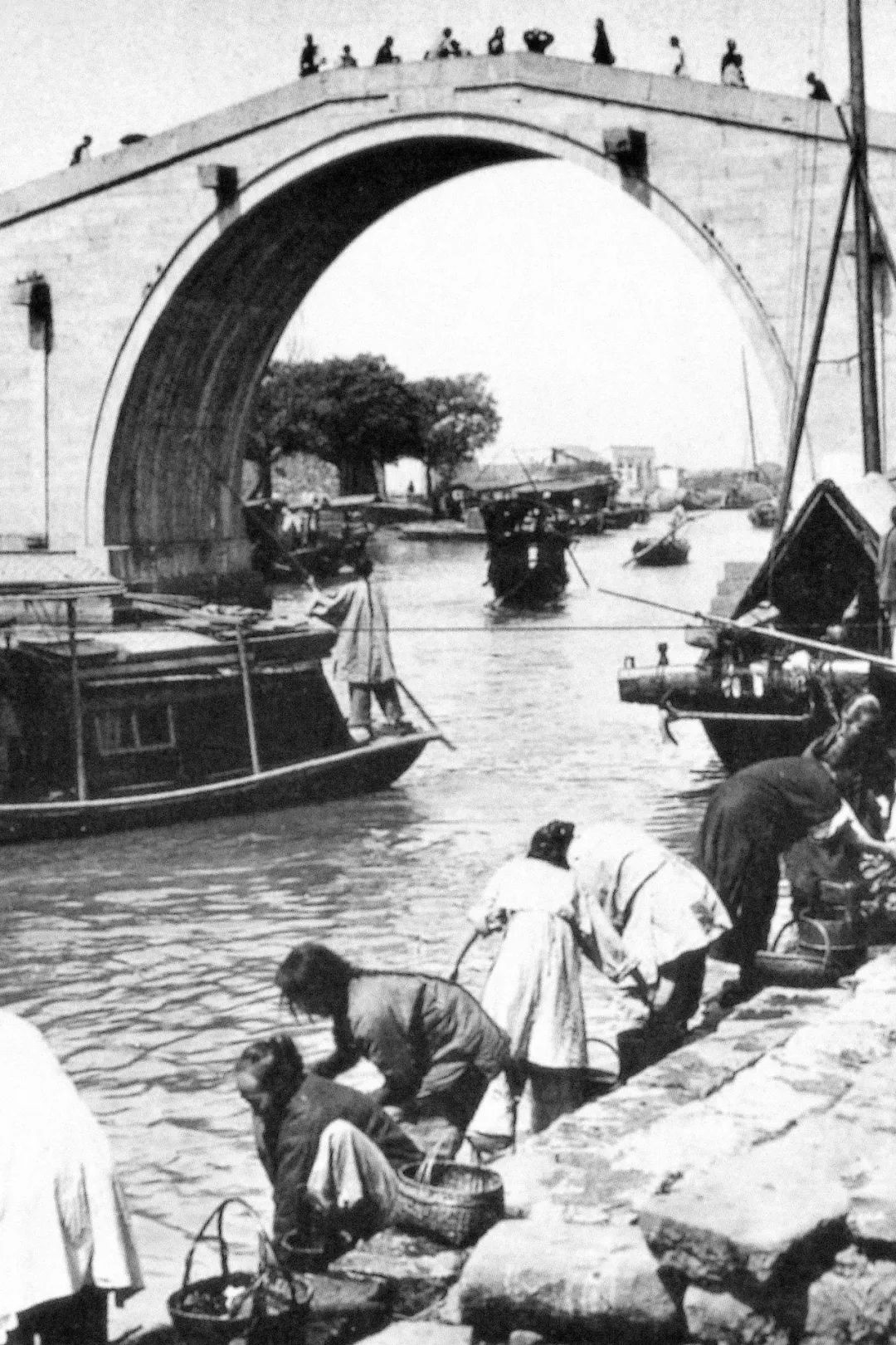 (杭州运河广济桥上的行人,请滑动查看今北京什刹海上的郭守敬雕像,摄影师@杨照夫&君作刃)