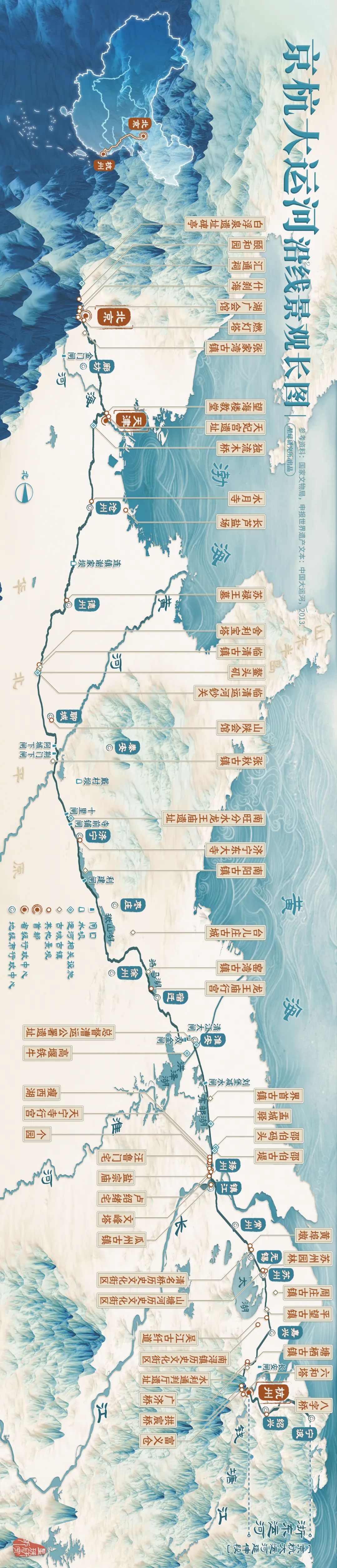(请横屏观看,京杭大运河沿线景观长图;友情提醒:今京杭大运河仍未全线通航,未经批准切勿私自下水,在已开通游船的部分河段,可乘船来一场惬意的穿越体验,制图@吴昕恬/星球研究所)