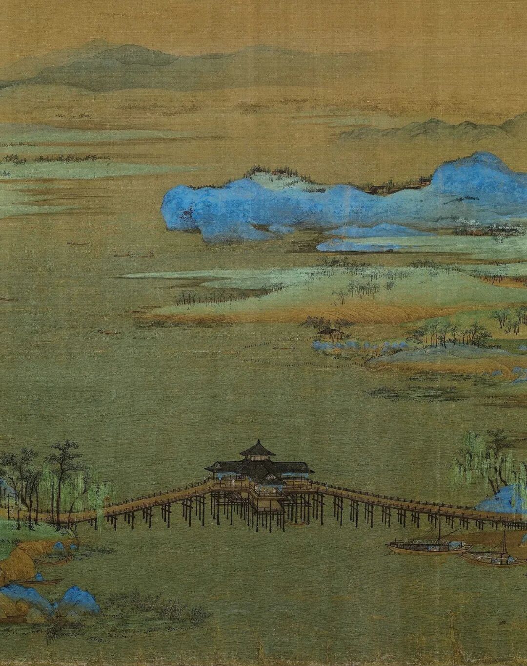 (北宋王希孟的《千里江山图》局部,现藏于故宫博物院)