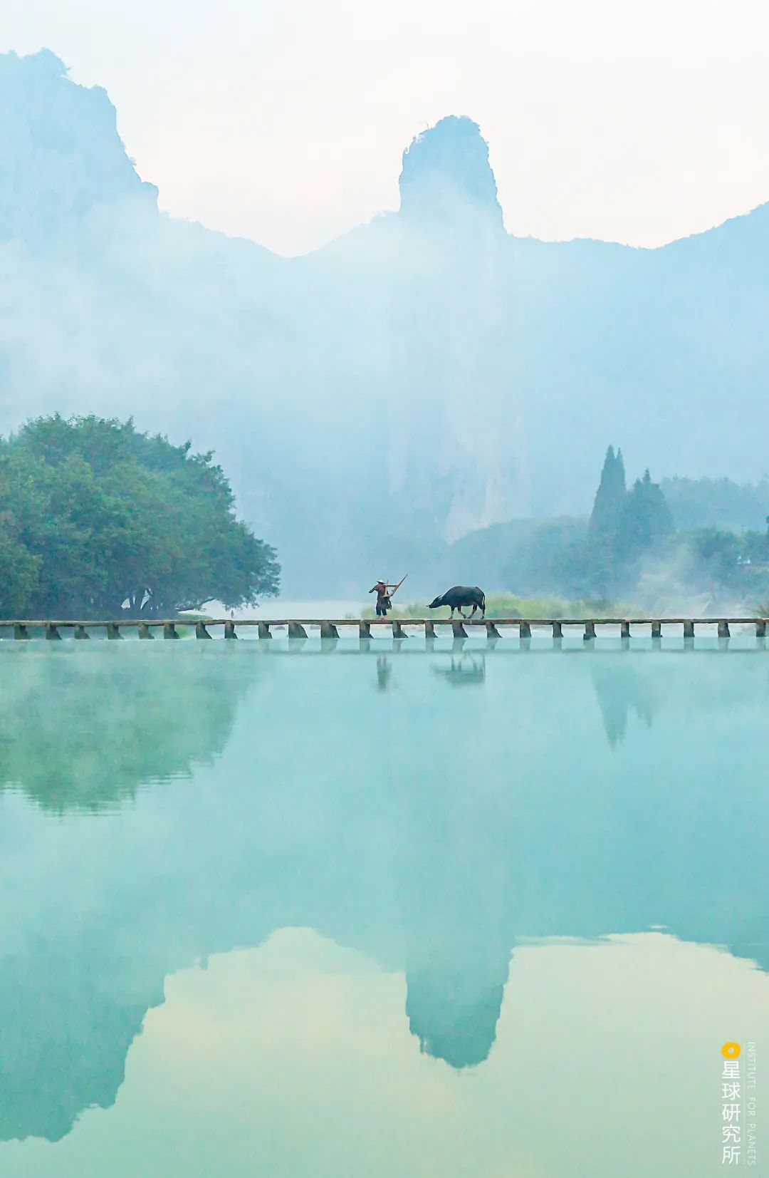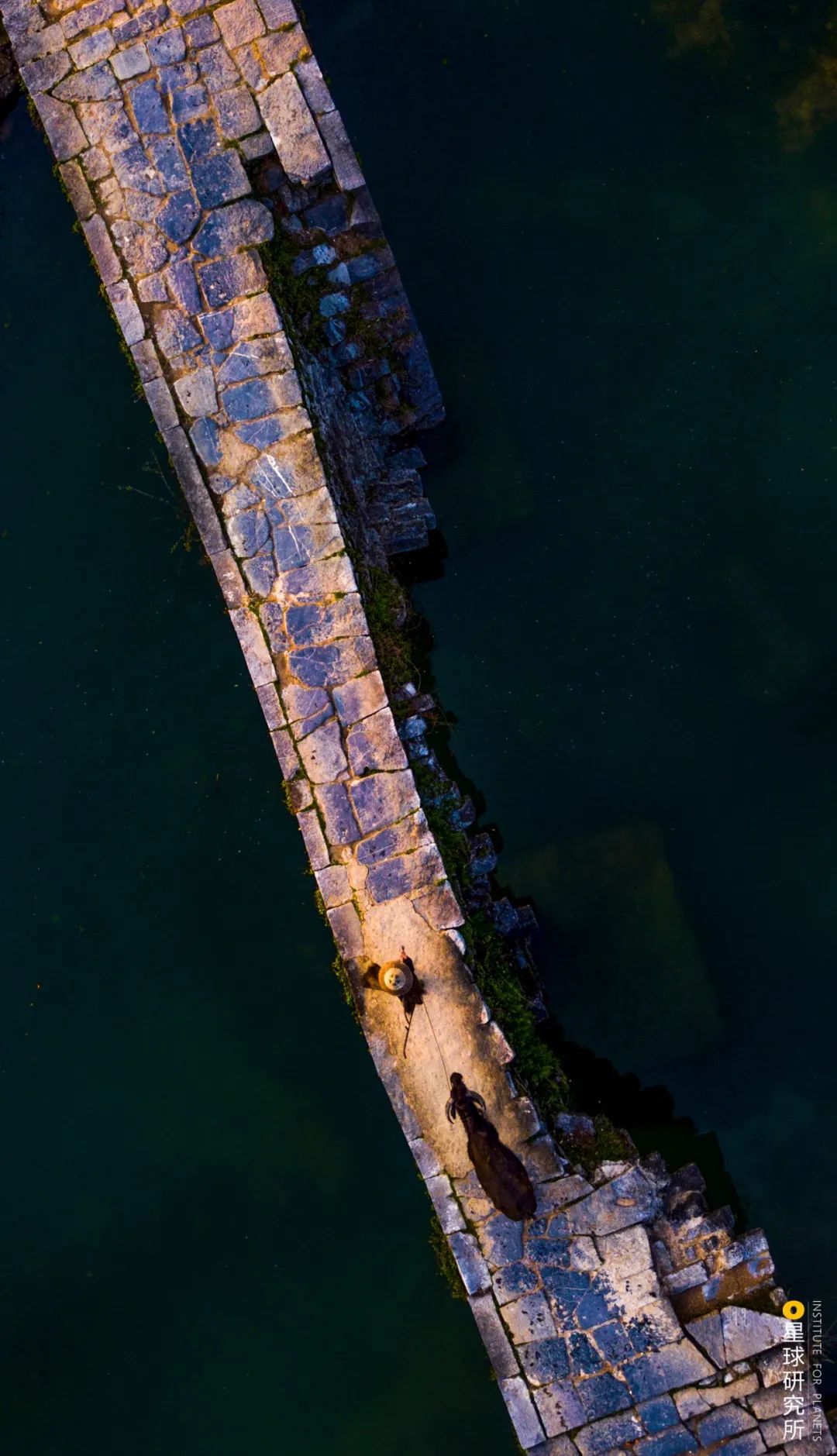 (上文出自刘百熙的对联,图为江西上饶婺源县段莘乡王村,一位农夫牵着黄牛从残桥中走过,图片源自@VCG)