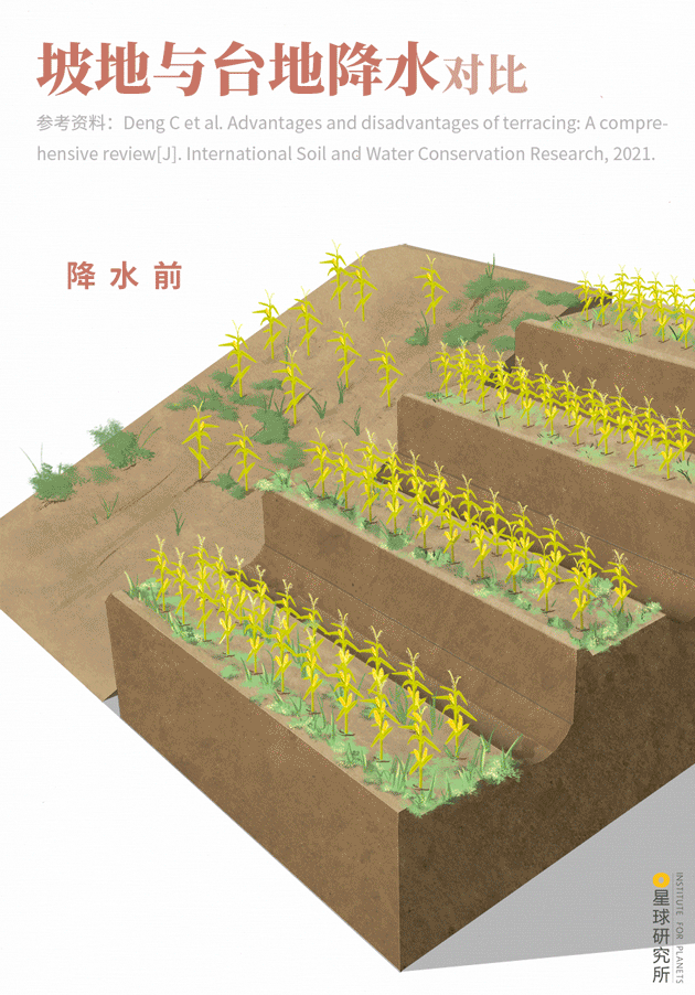 (梯田引水灌溉过程示意,制图@王申雯&陈随/星球研究所)
