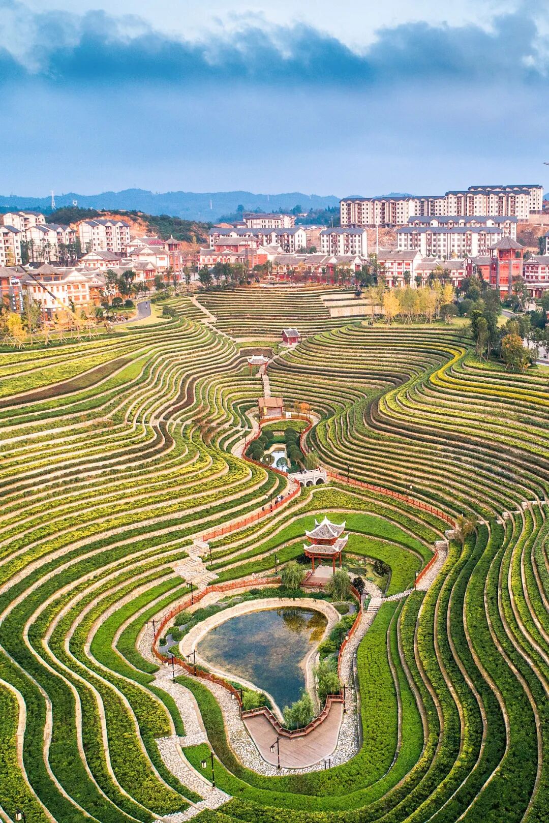 (贵州毕节大方奢香古镇中的城中花海梯田,图片来源@视觉中国)