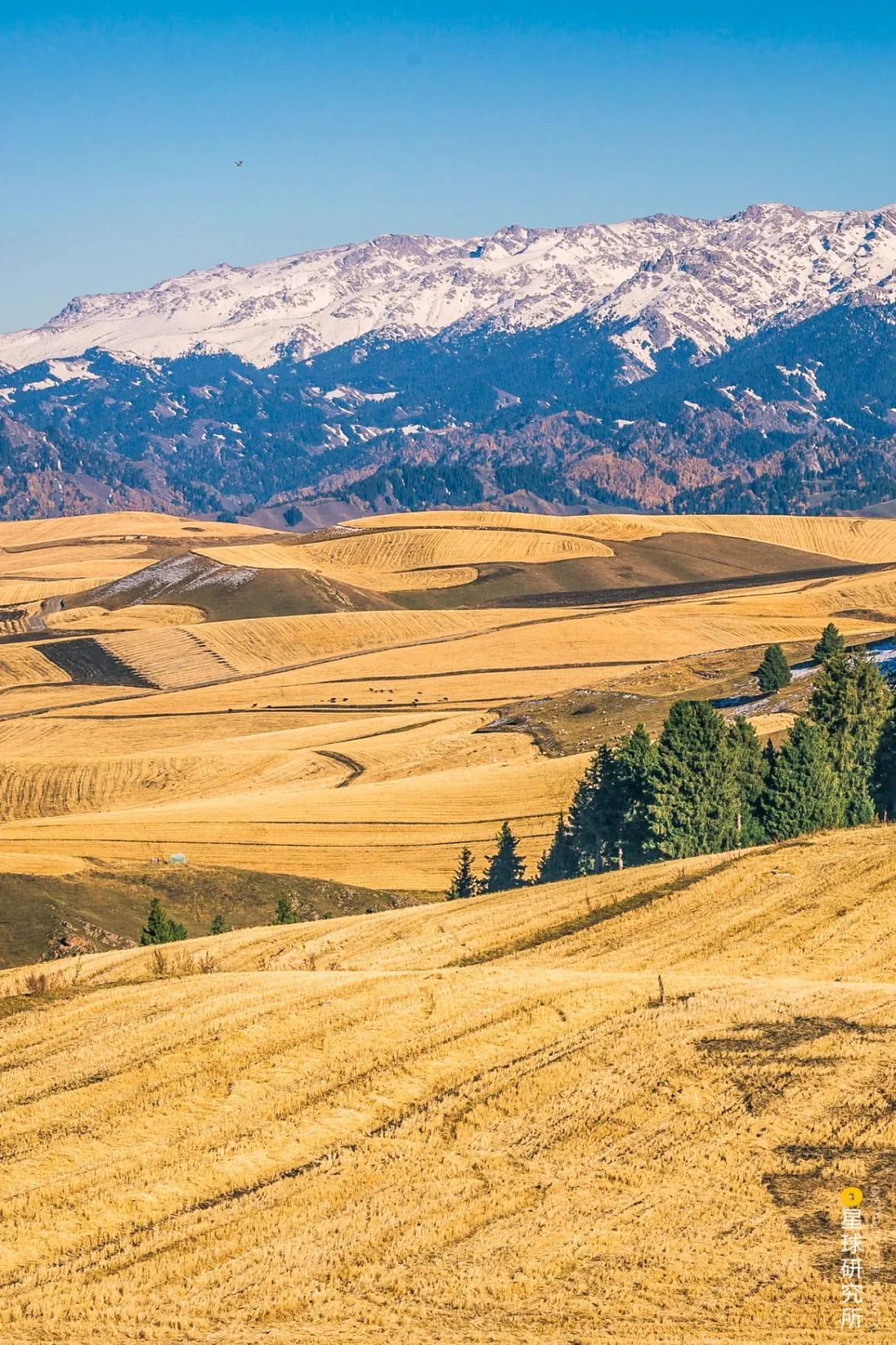 (新疆江布拉克山坡上的麦田,仅作示意,摄影师@飞翔)