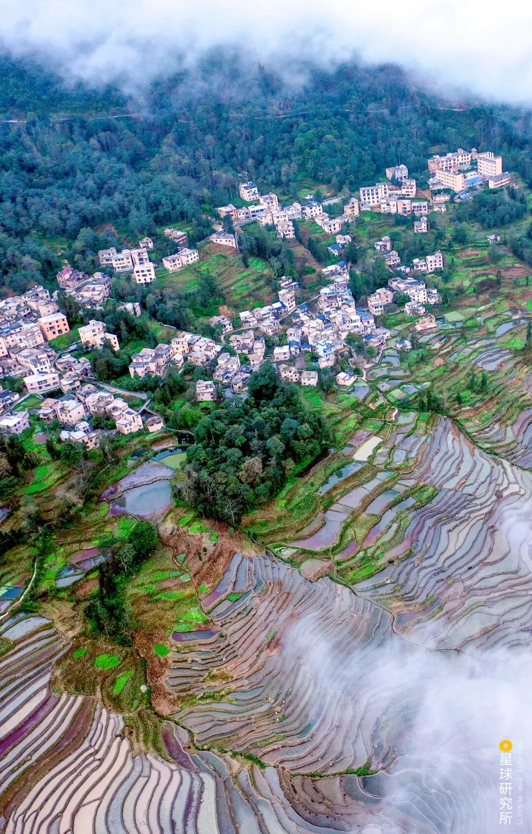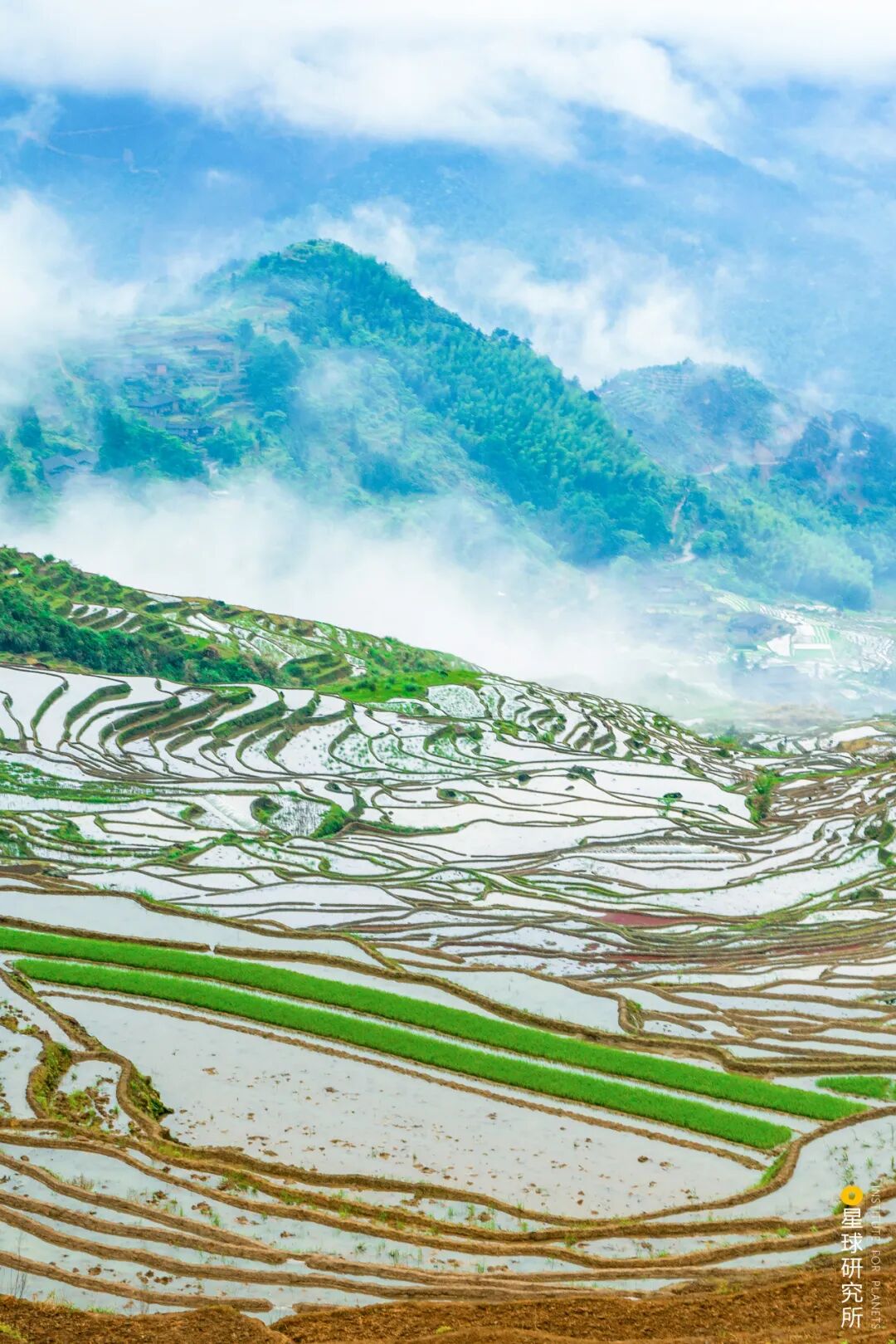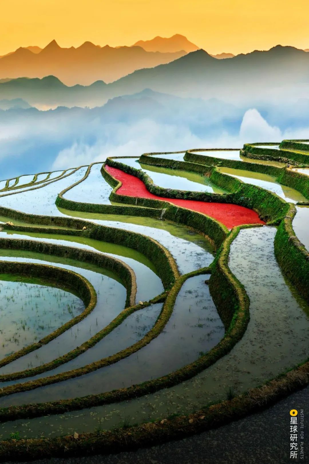 (诗句出自张炎《渡江云·山阴久客一再逢春回忆西杭渺然愁思》,下图为云南红河哈尼梯田,摄影师@廖志远)
