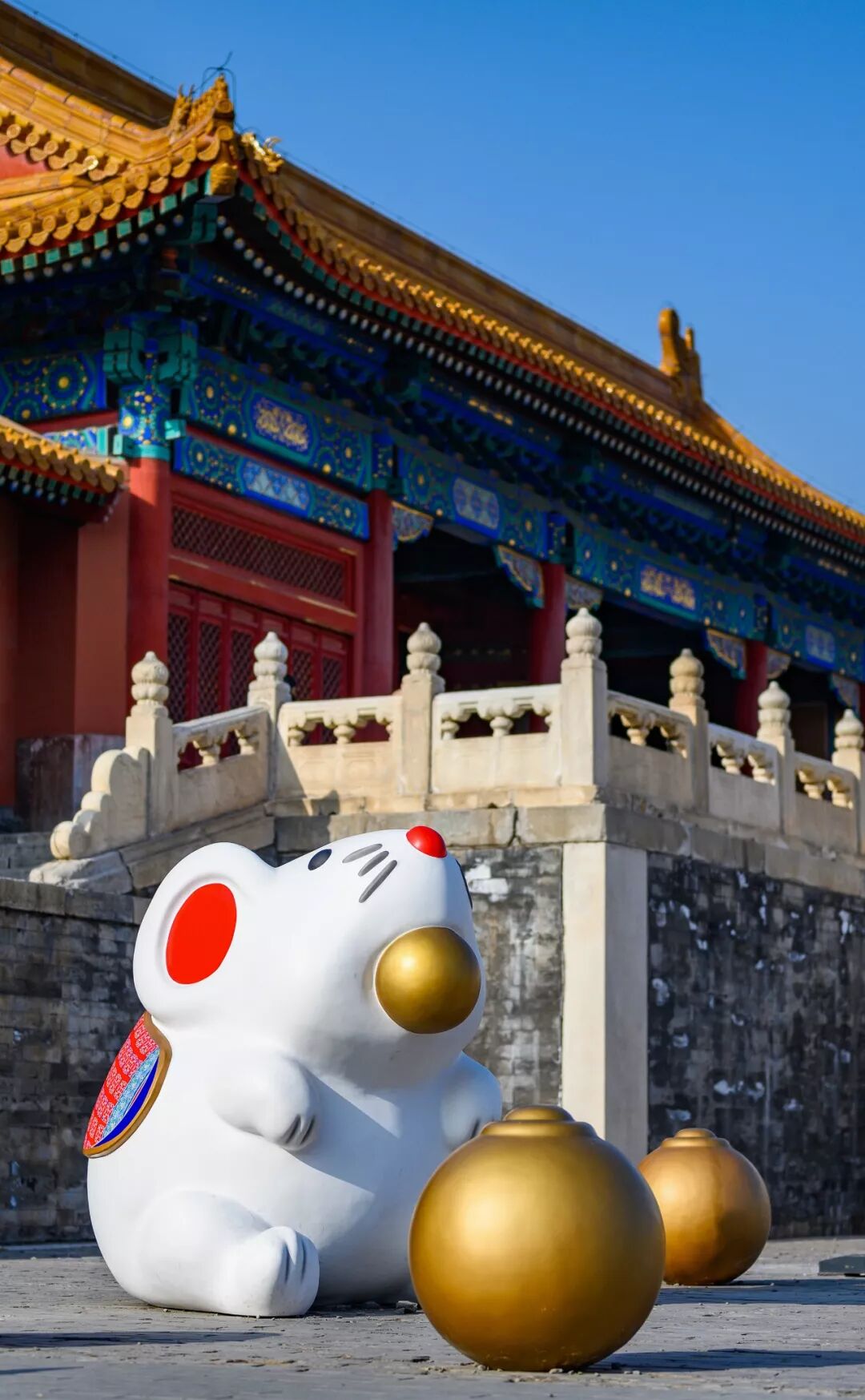(为庆祝今年的鼠年新春,故宫内放置了萌化的吐宝鼠雕塑作品,摄影师@李召麒)