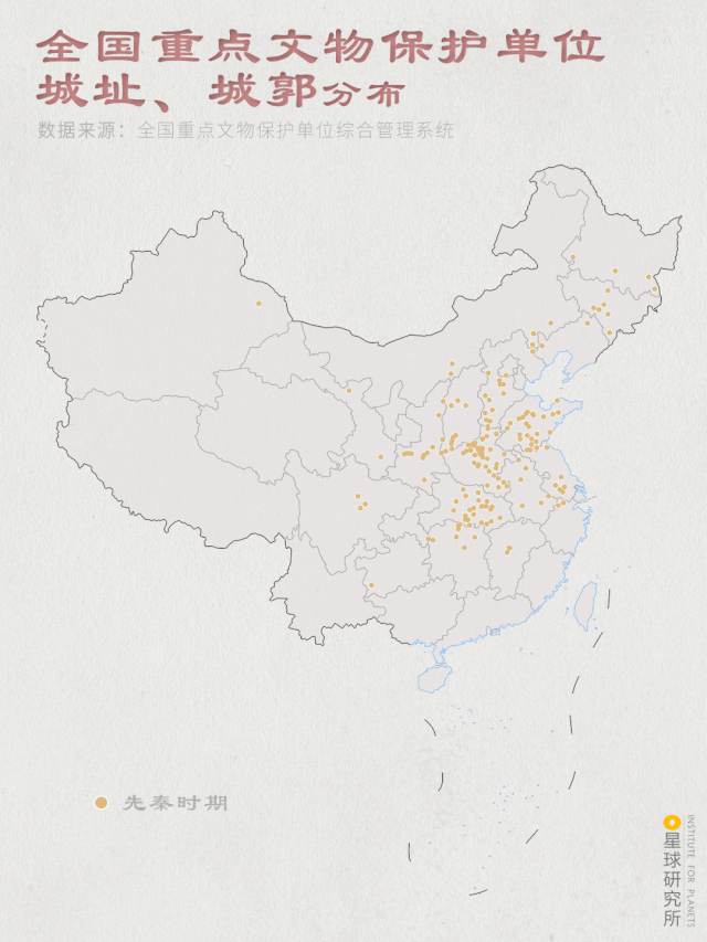 (全国重点文物保护单位城址、城郭分布,制图@陈思琦/星球研究所;据美国学者Carl Haub估算,地球有史以来总计诞生过1080亿个智人;根据现在中国人口占世界人口的比例推算得出:中国有史以来共诞生过200亿人口,该数据并非准确数据)