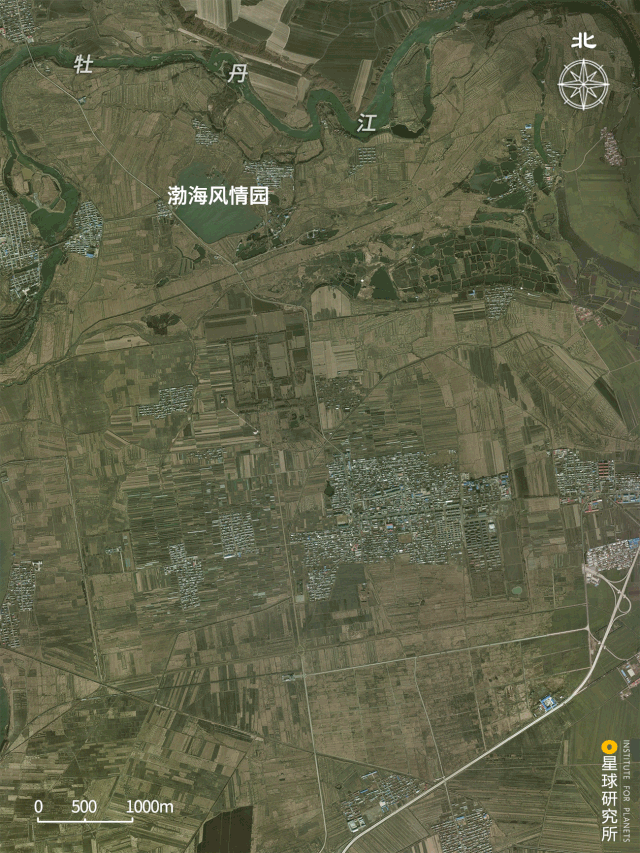 (湖南常德城头山遗址卫星图,距今约6100年,城池轮廓非常清晰,源自@Esri Image Map)