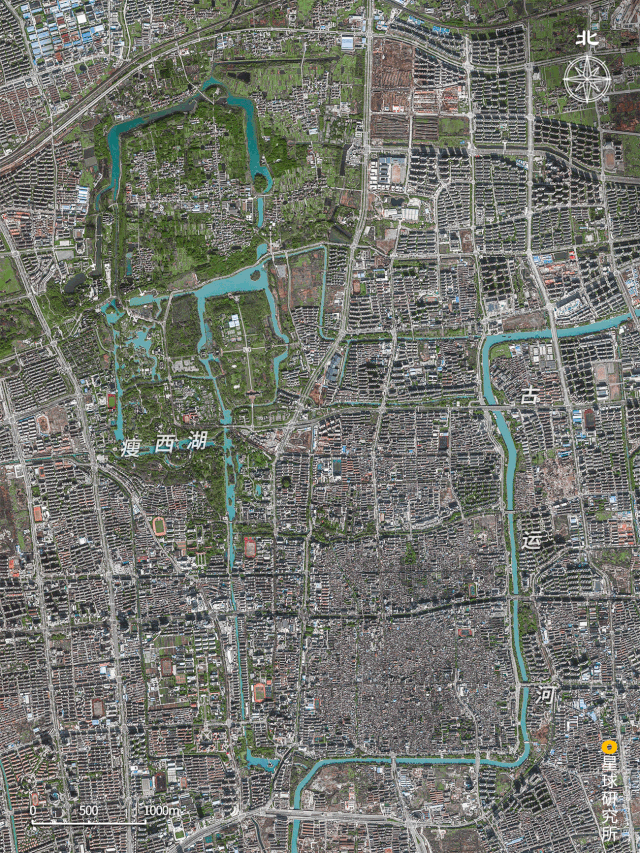 (苏州古城的双棋盘式格局,制图@陈随/星球研究所,卫星图源自高德地图)