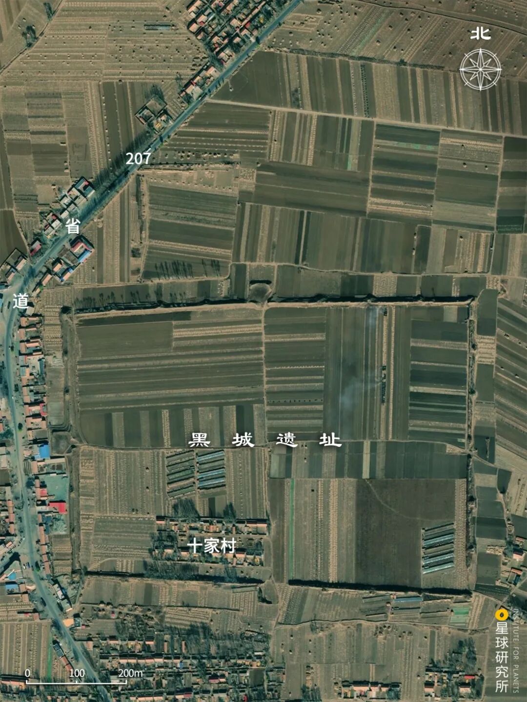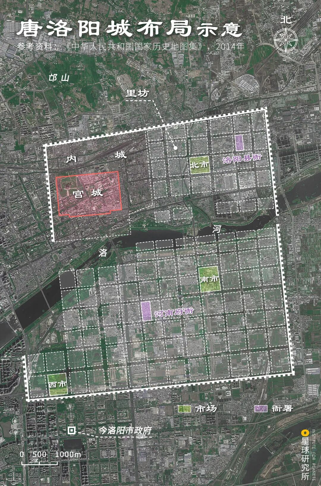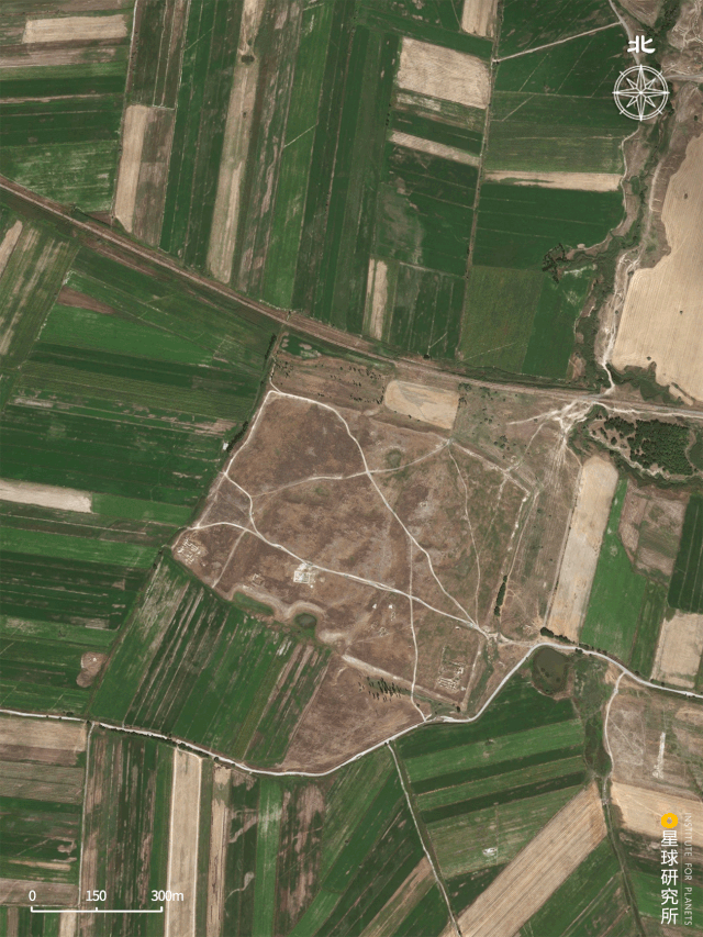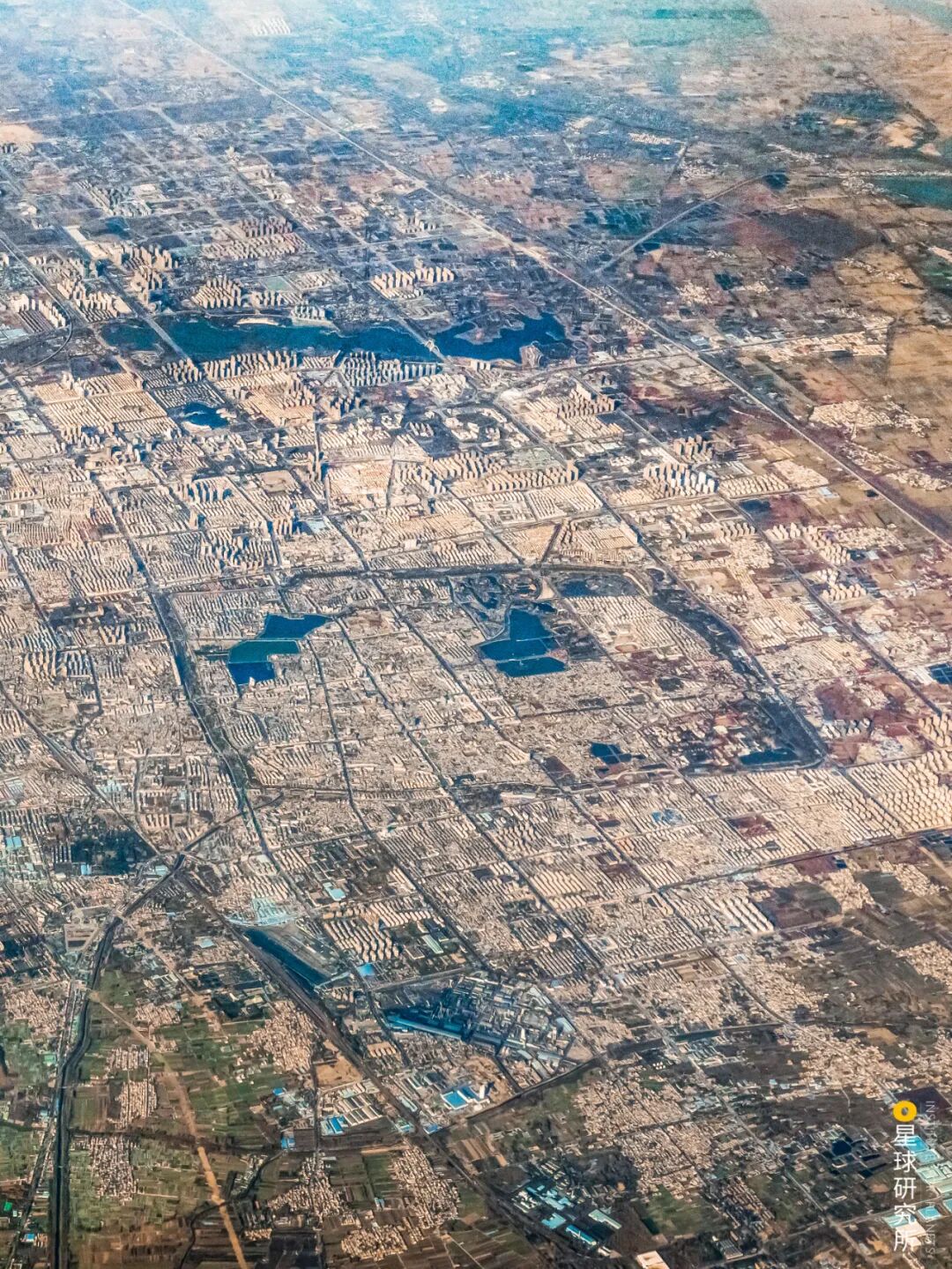 (河南安阳殷墟商城卫星图,商代晚期都城,至今未发现城墙;但殷墟北部的商代中期都城洹北商城有城墙;源自@Esri Image Map)