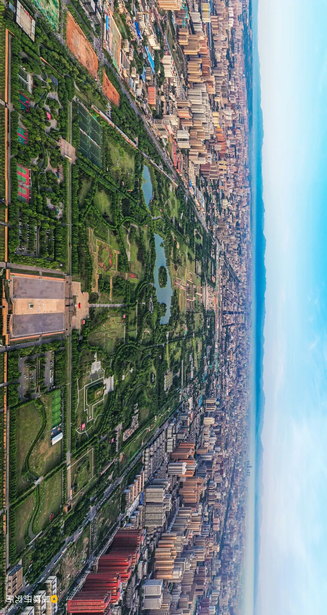 (请横屏观看,河南郑州商城遗址内城城墙航拍,推测为商代都城之一,身居闹市却幸运地保存了相当长度的城垣,摄影师@石耀臣)