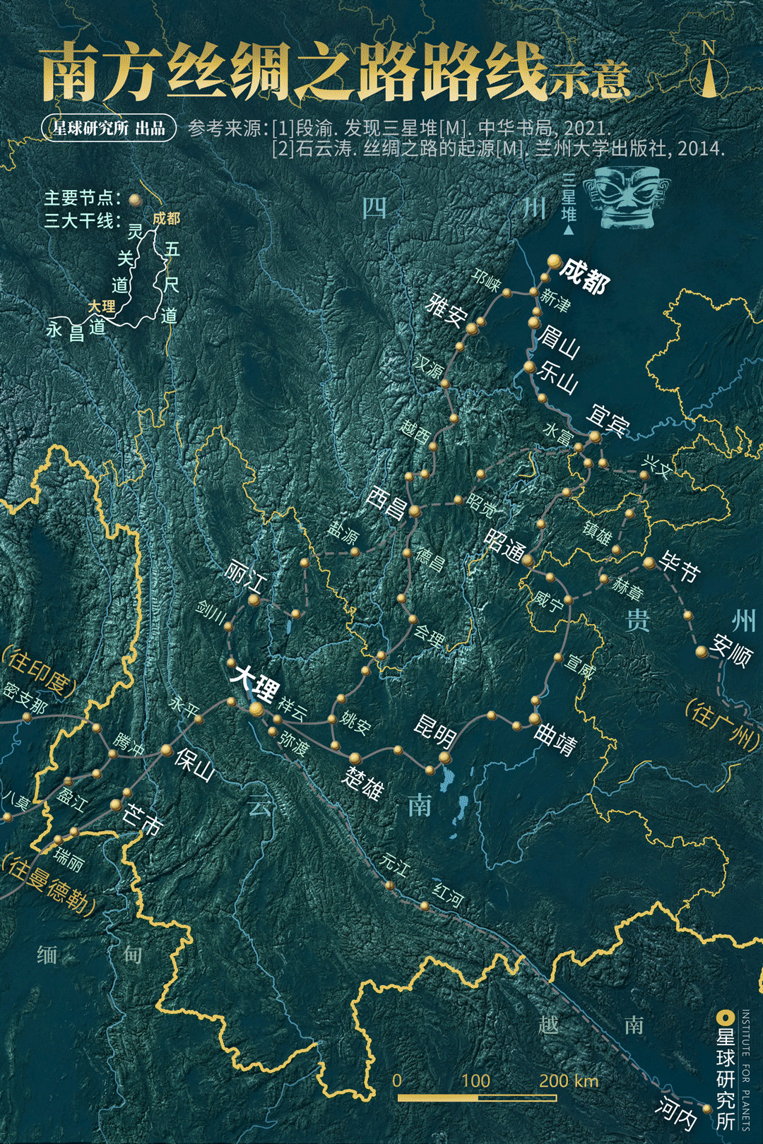 (四川是中国丝绸的重要起源地之一,三星堆文化时期的丝绸制作水平已经相当成熟,摄影师@吴渝&谭本建&冯艺卓,制图@王申雯/星球研究所)