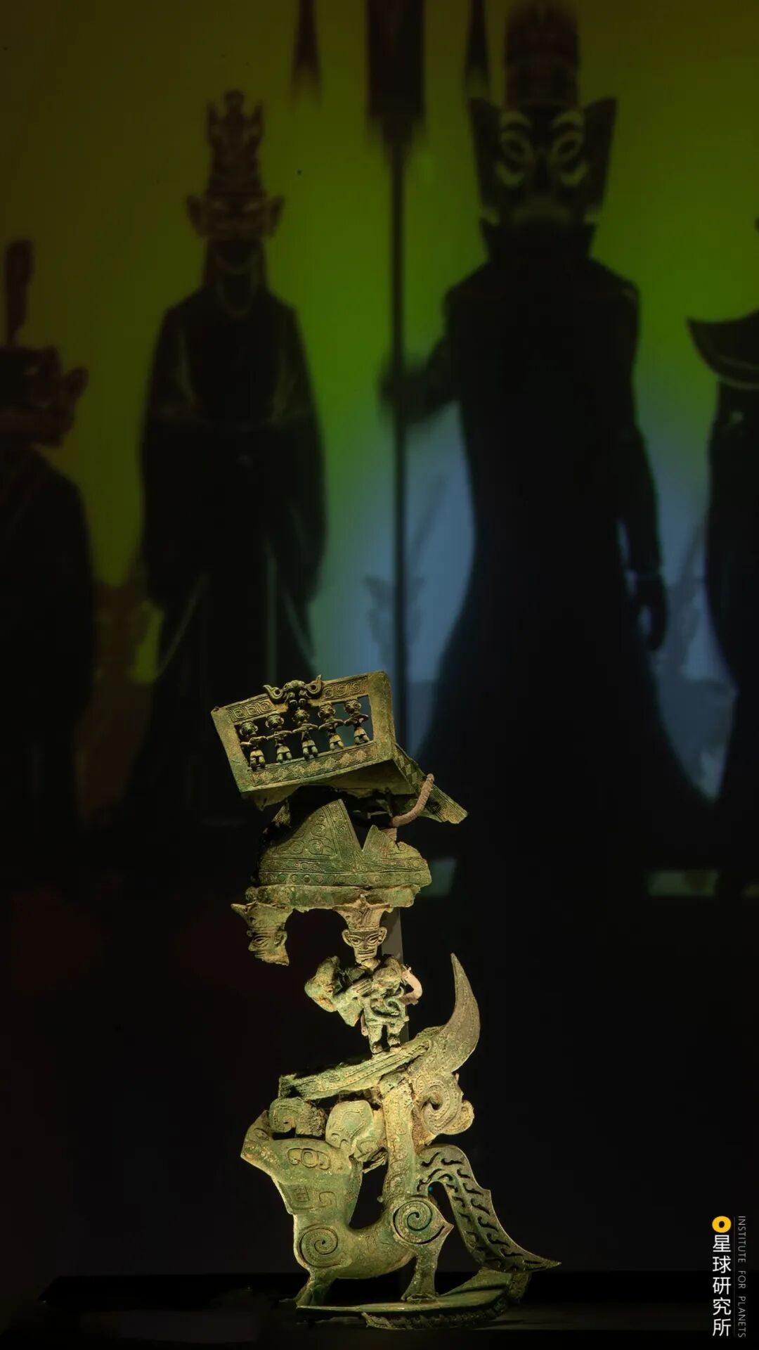 (三星堆青铜神坛【研究性复原】,自上而下分别象征着古蜀人心目中的“天、人、地”三界,摄影师@包浩霖)