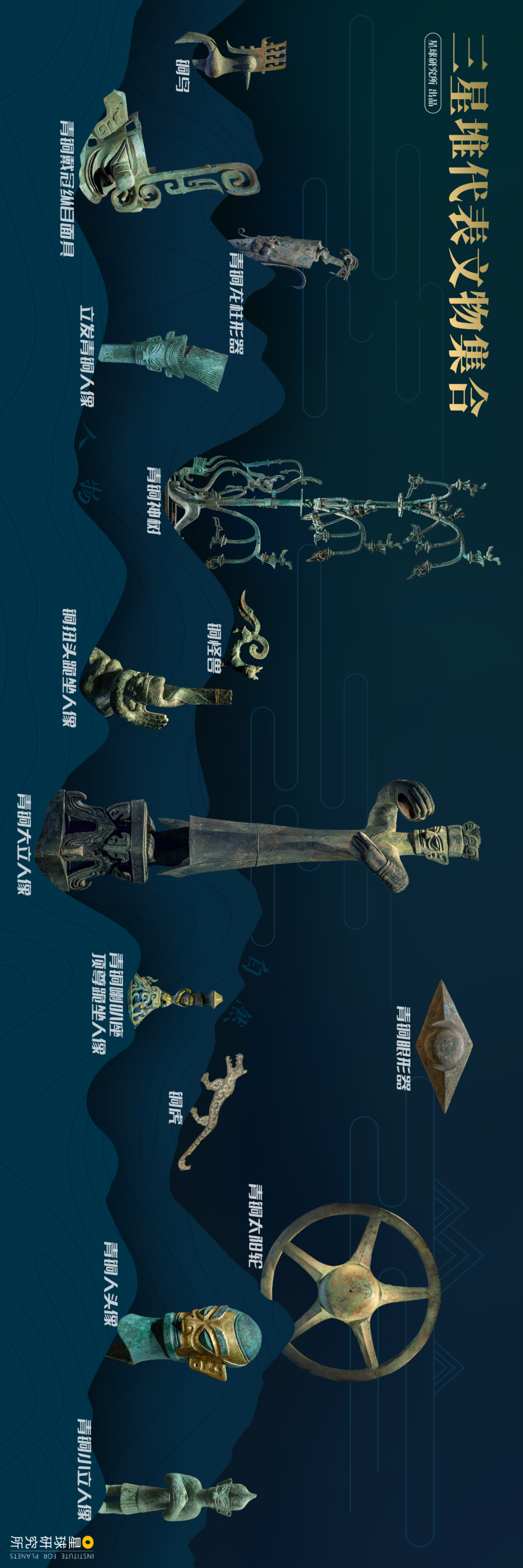 (以金沙遗址为代表的十二桥文化,从商晚期一直到春秋时期,延续了500多年之久,摄影师@何世海&张艳&徐剑锋&袁义明,制图@王申雯/星球研究所)