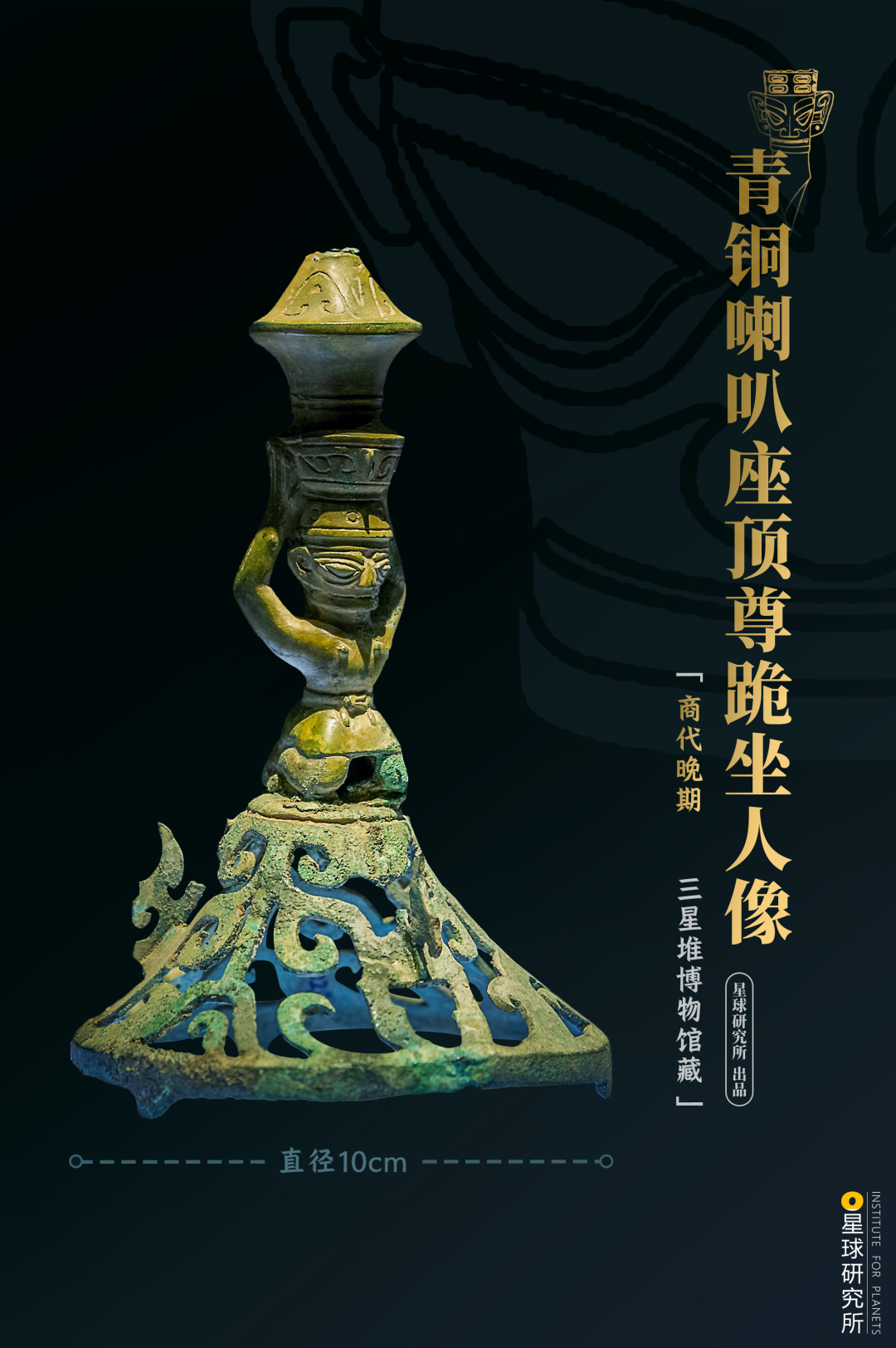 (这件青铜立人不足三星堆的十分之一高,可能意味着世俗政治权力的增强和宗教神权的衰落,摄影师@张艳,制图@冯艺卓/星球研究所)