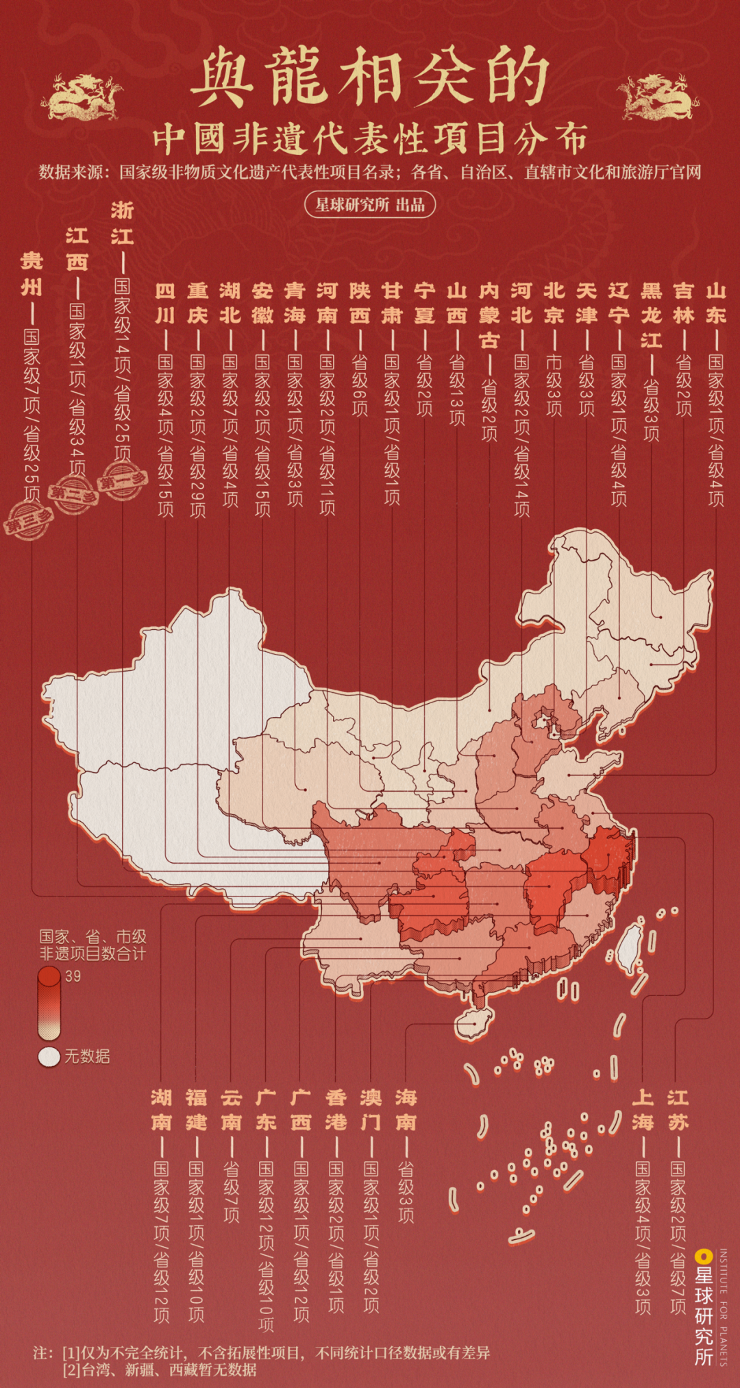 (据不完全统计,全国与龙有关的国家级、省(市)级非遗项目多达360种,制图@松楠/星球研究所)