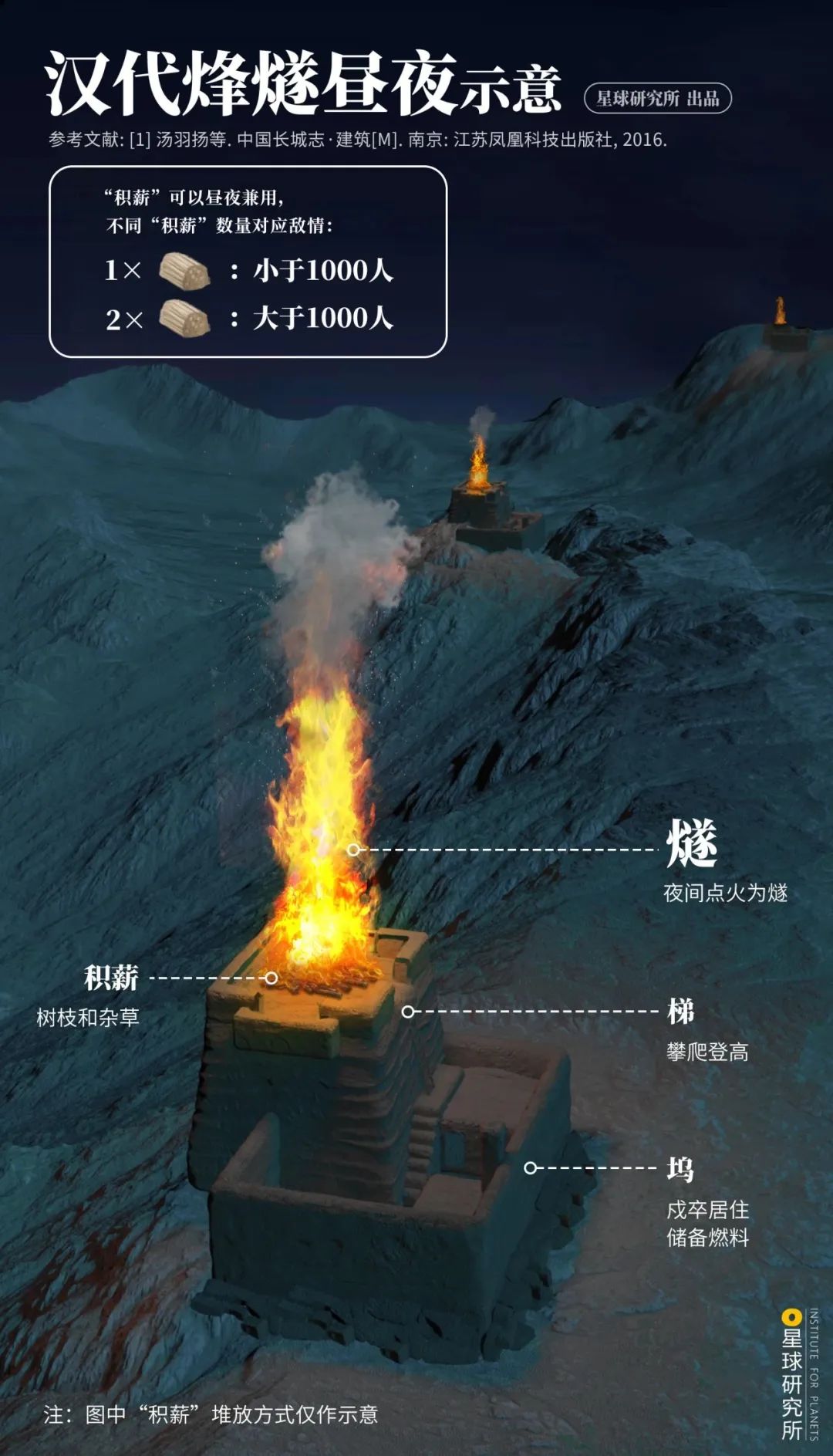(早期长城作用示意,图中长城内外两侧仅供示意,并非现实中的内外两侧;底图是敦煌汉长城遗址,制图@杜睿/星球研究所,图片来源@视觉中国)