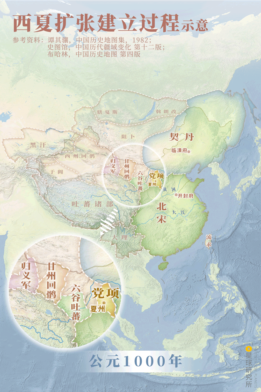 (西夏扩张建立过程示意,制图@陈志浩/星球研究所)