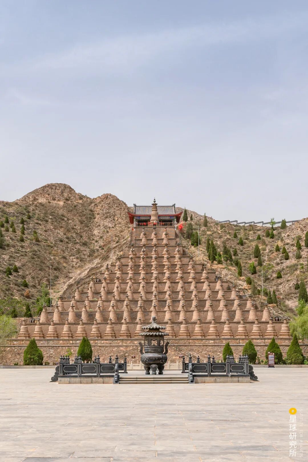 (青铜峡一百零八塔,其面向黄河,与广阔山脉融为一体,摄影师@风沉郁)