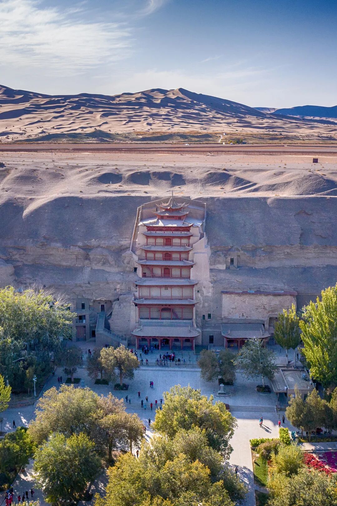 (敦煌莫高窟,敦煌莫高窟中有80余个洞窟,在西夏时期被增修和开凿,图片源自@视觉中国)