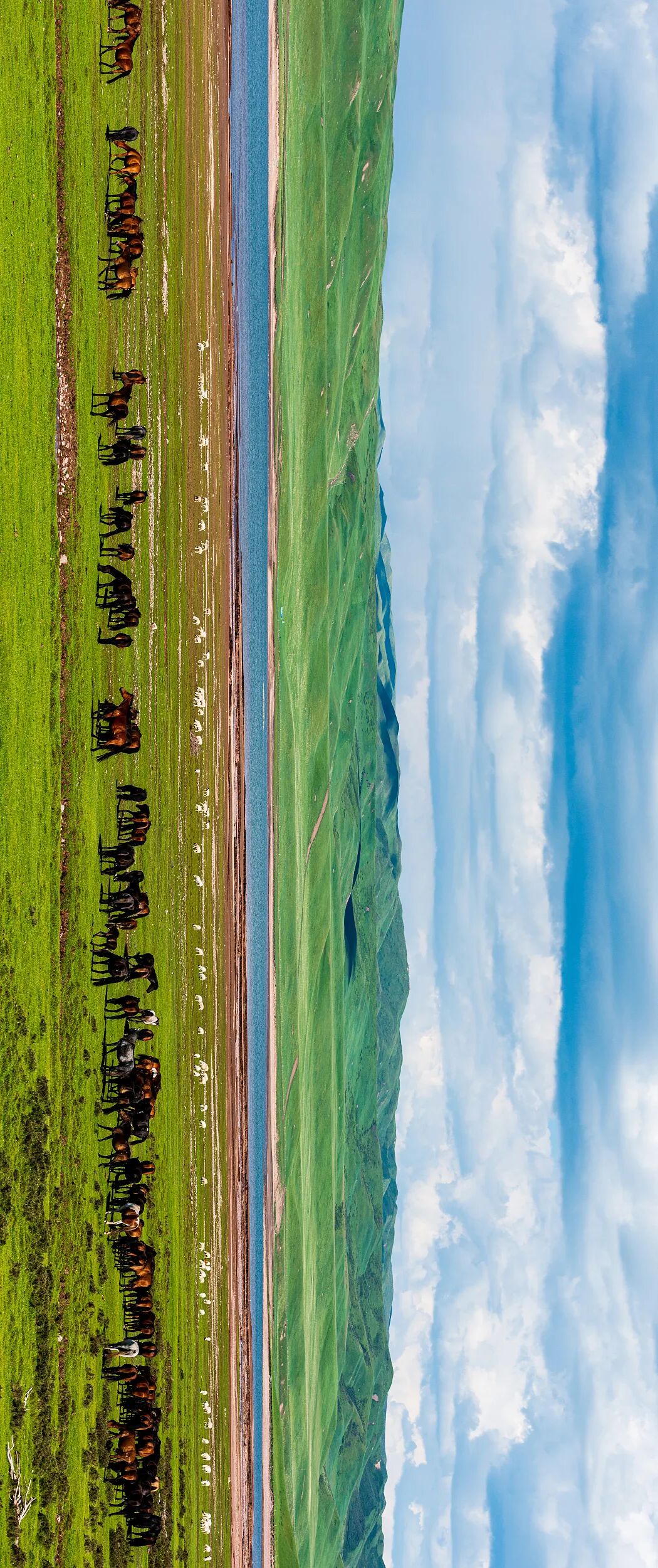 (请横屏观看,山丹军马场,位于河西走廊的祁连山与焉支山之间,至今仍为亚洲最大的军马基地,图片源自@视觉中国)