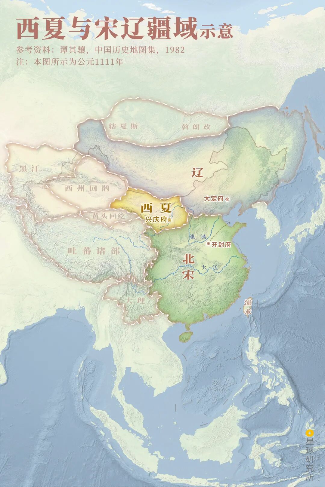 (西夏与宋辽疆域示意,制图@陈志浩/星球研究所)