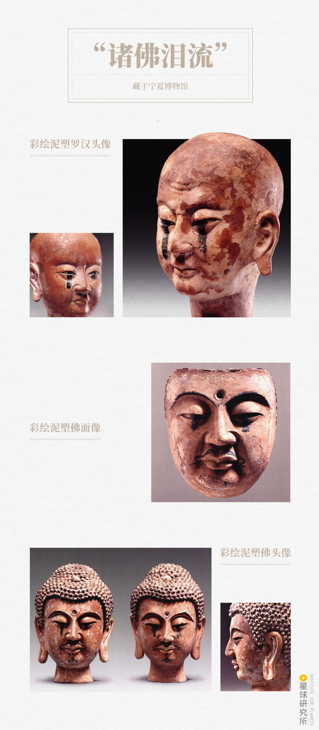 (西夏亡国之后,西夏佛像无人维护,高温之下眼珠黑色釉料熔化流出,犹如“泪痕”,诸多佛像都是如此,堪称“诸佛泪流”,图片源自@宁夏文物考古研究所,制图@汉青/星球研究所)