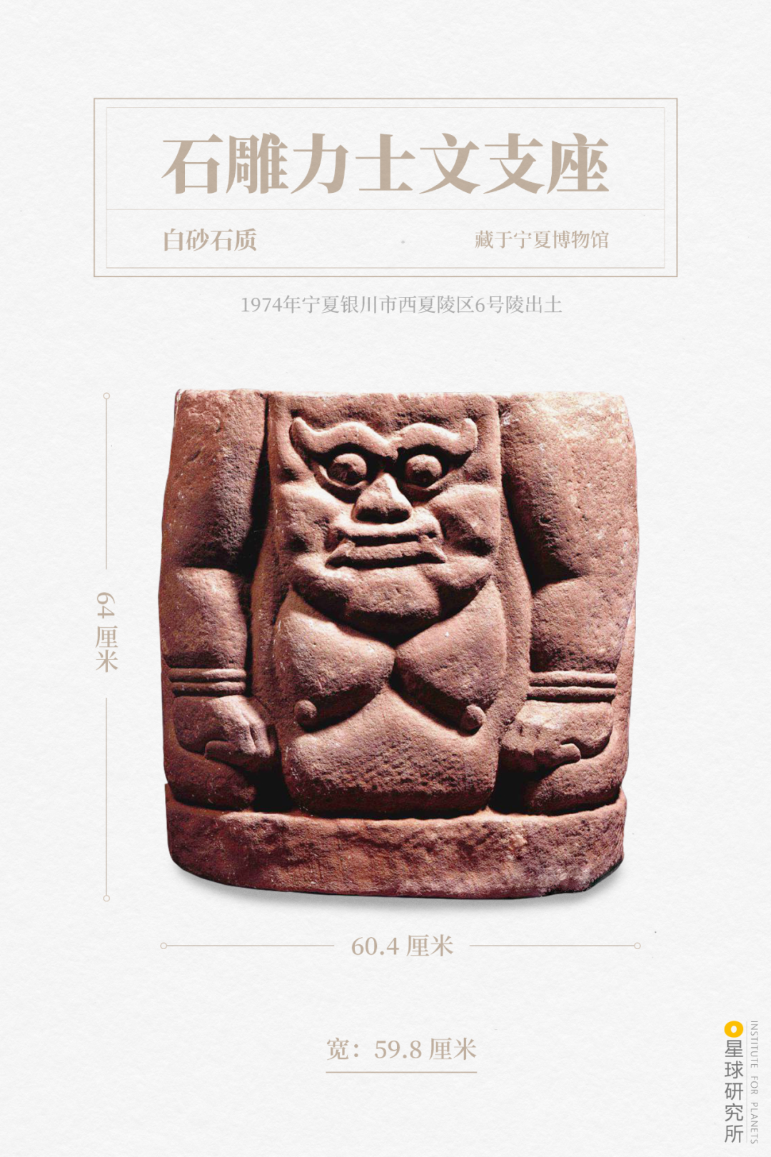 (西夏石雕力士文支座,为圆雕女性人像,出土的同类支座上刻有西夏文,汉译为“文支座”,图片源自@宁夏文物考古研究所,制图@汉青/星球研究所)