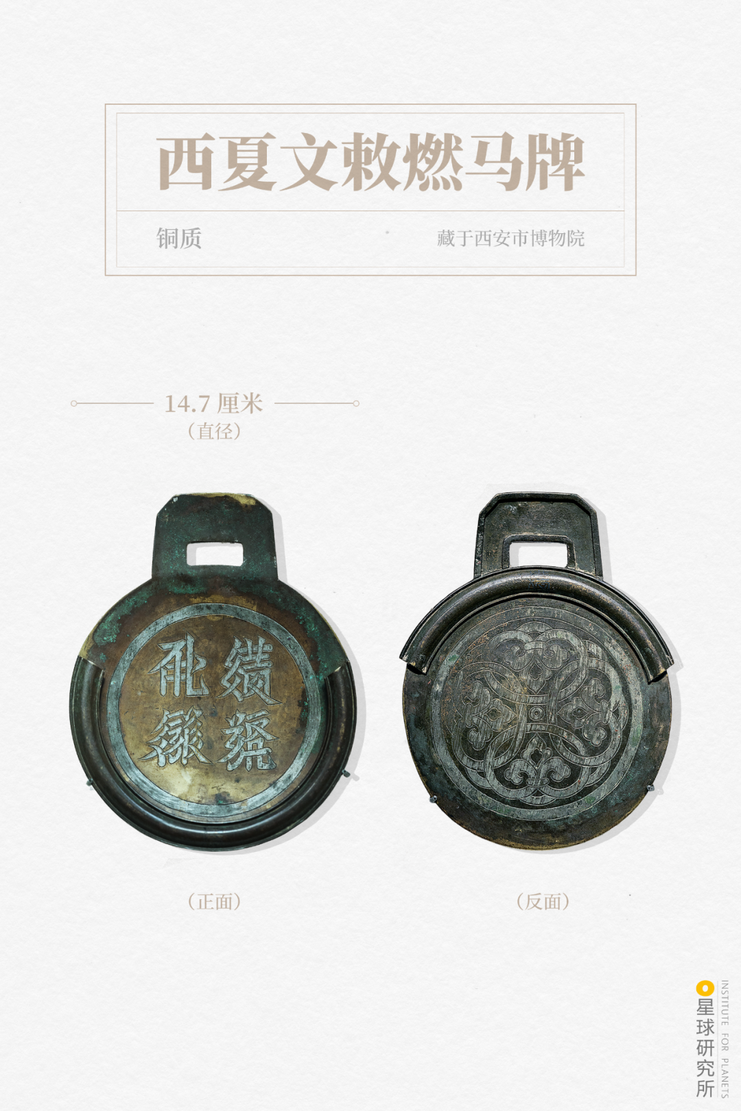 (上文战争年份数据出自《西夏战史》的西夏战事年表,下图为西夏文敕燃马牌,“敕燃马牌”意为“敕令驿马昼夜急驶”,是紧急文书、命令等公文传递通行的标识物,常用于军队中十万火急的军令传达,摄影师@柳叶氘,制图@汉青/星球研究所)