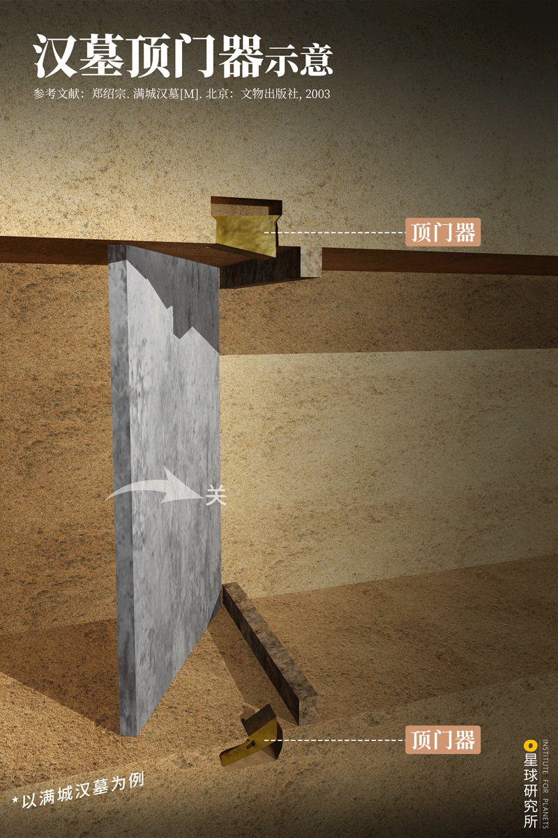 (汉墓顶门器示意,制图@杨宁/星球研究所)