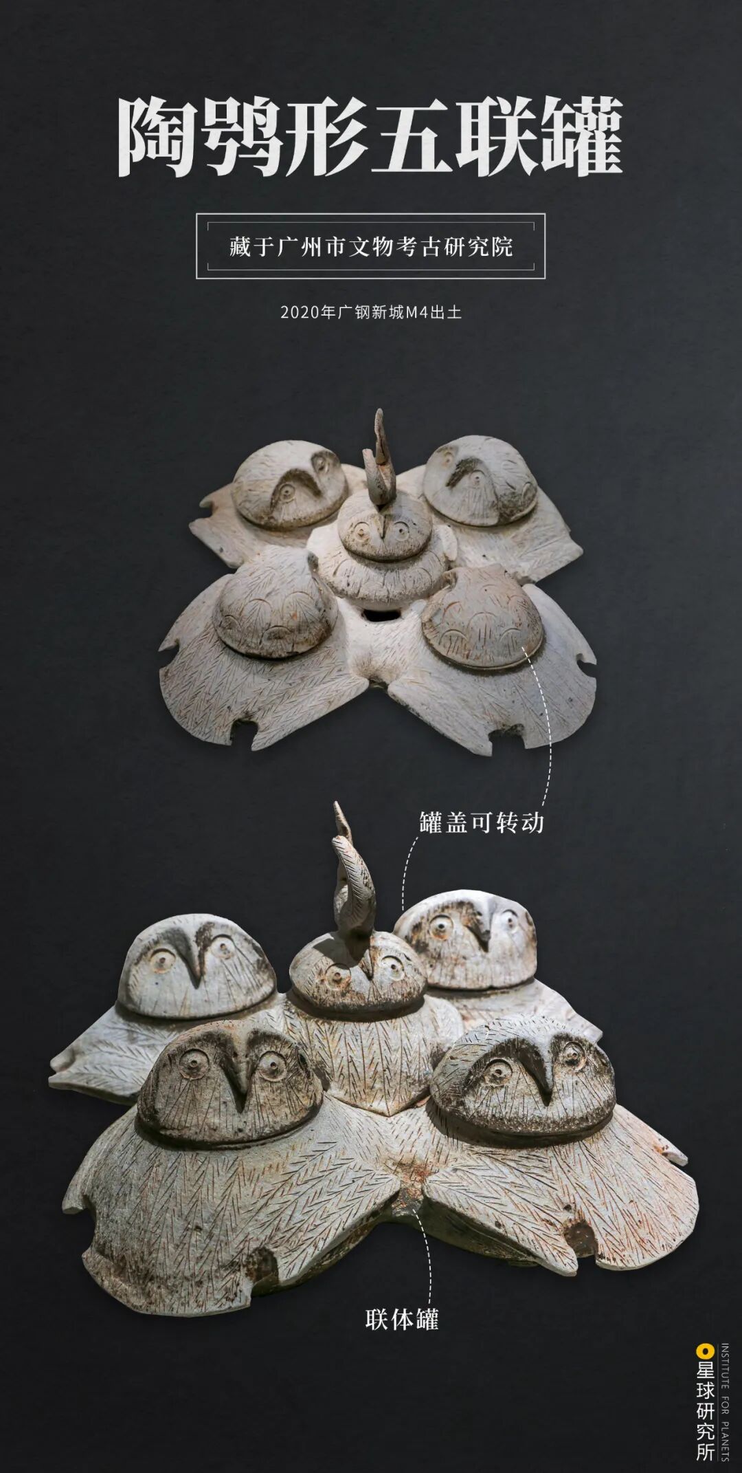 (陶鸮形五联罐,盛食器,摄影师@快快乐乐的小蜻蜓、肖怡宁,制图@汉青/星球研究所)