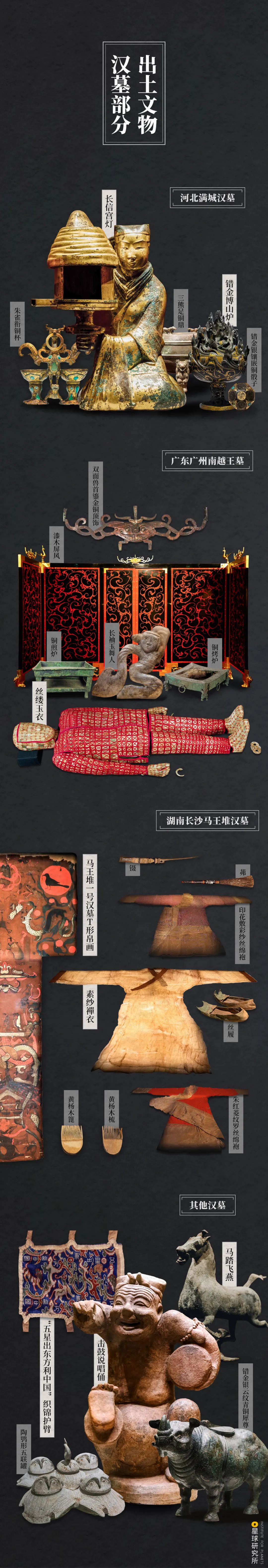 (汉墓部分出土文物,摄影师@柳叶氘、李文博、龙世杰、朱福升、刘玉生、苏李欢、于奕奇、肖怡宁、南越王博物院,制图@汉青/星球研究所)