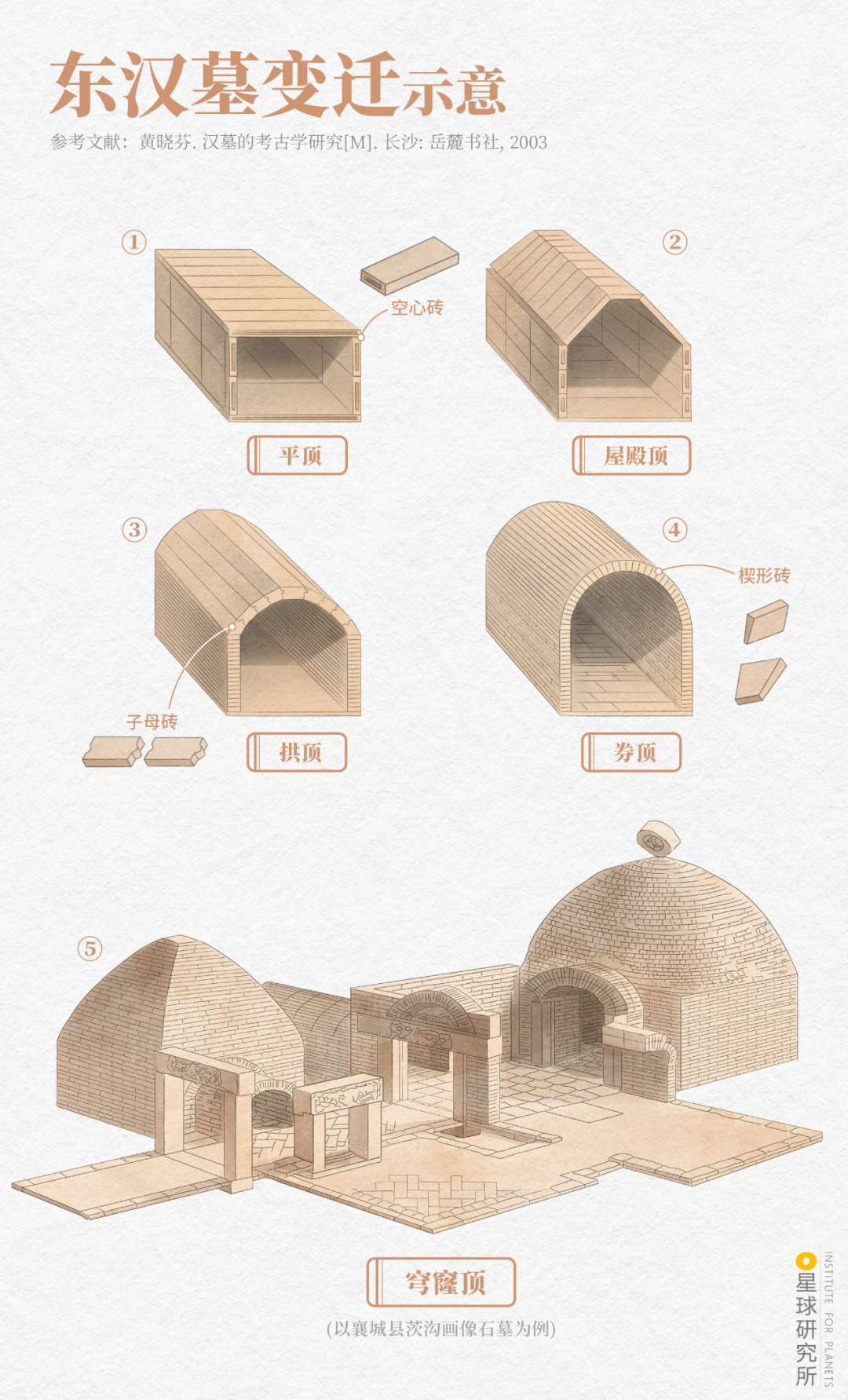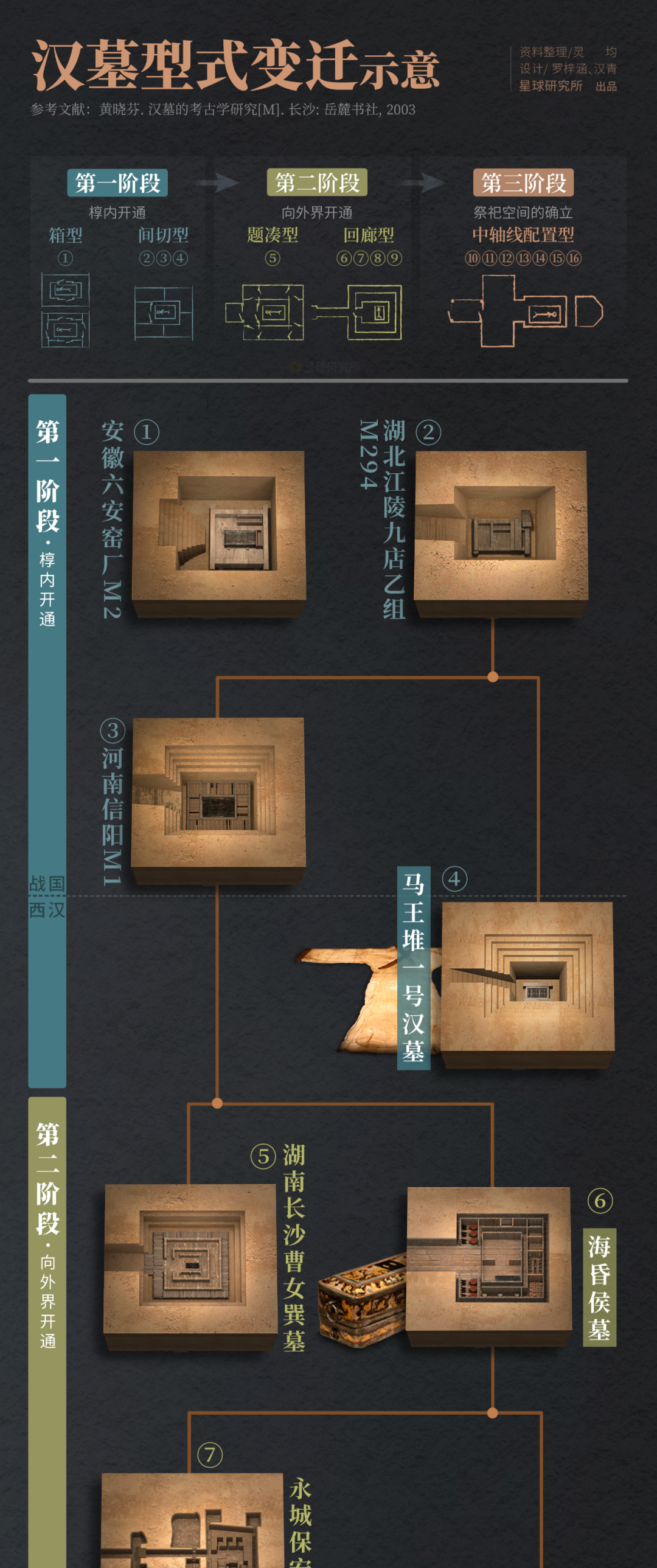 (汉墓型式变迁示意,摄影师@柳叶氘、彭东鑫、龙世杰、南越王博物院,制图@汉青&罗梓涵/星球研究所)