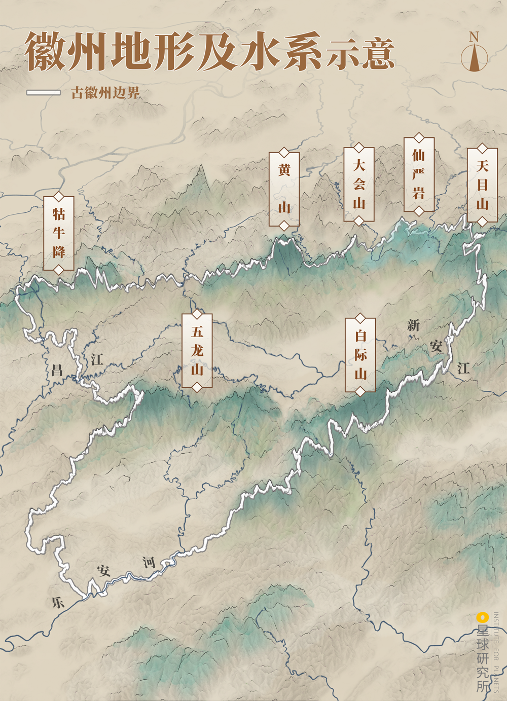 (徽州地形及水系,制图@王申雯&巩向杰/星球研究所)