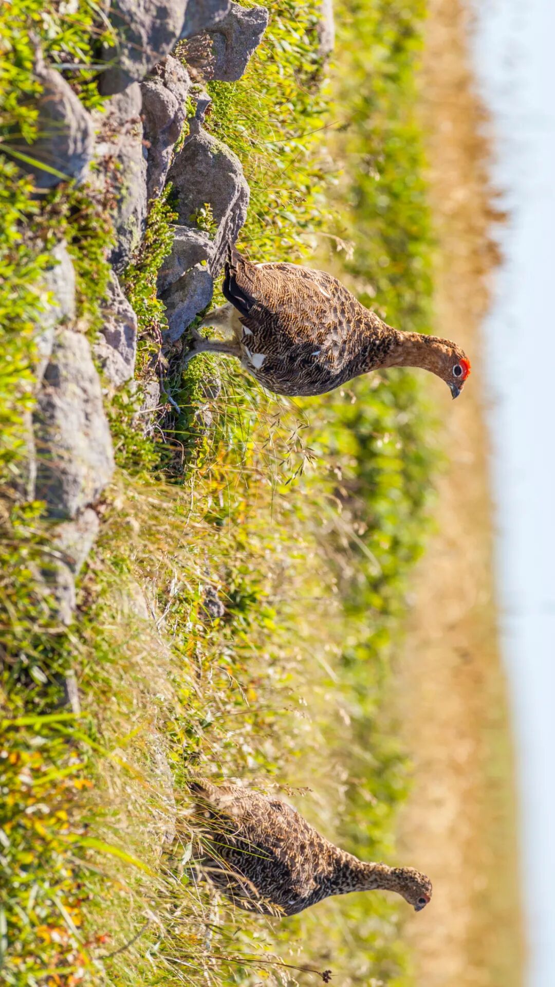 (请横屏观看,守护巢穴的柳雷鸟[左],旁边是它的配偶[右],“你孵蛋,我望风”,图片来源@alamy)