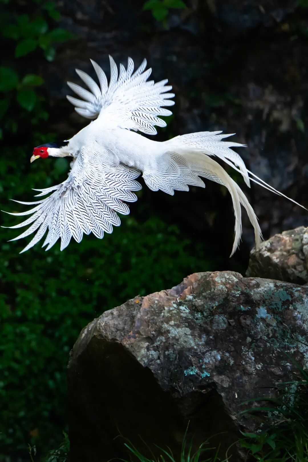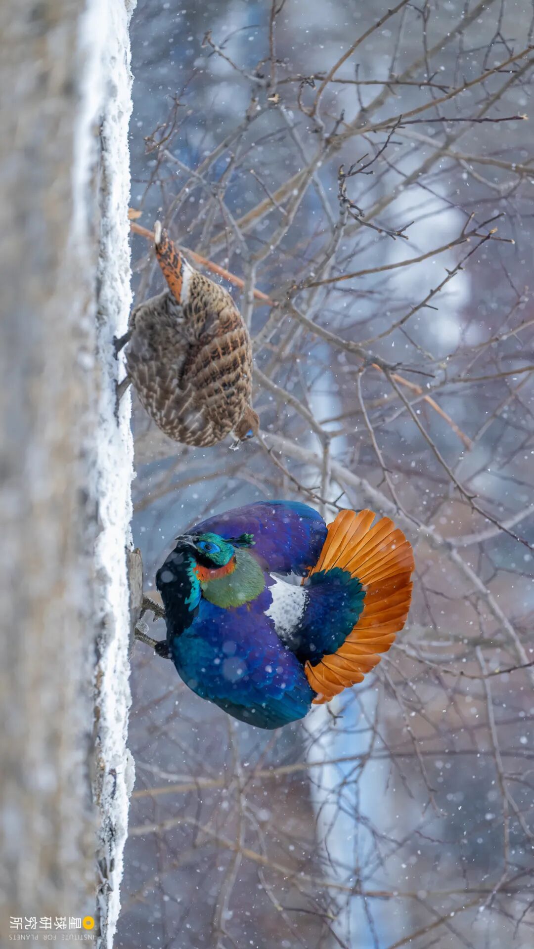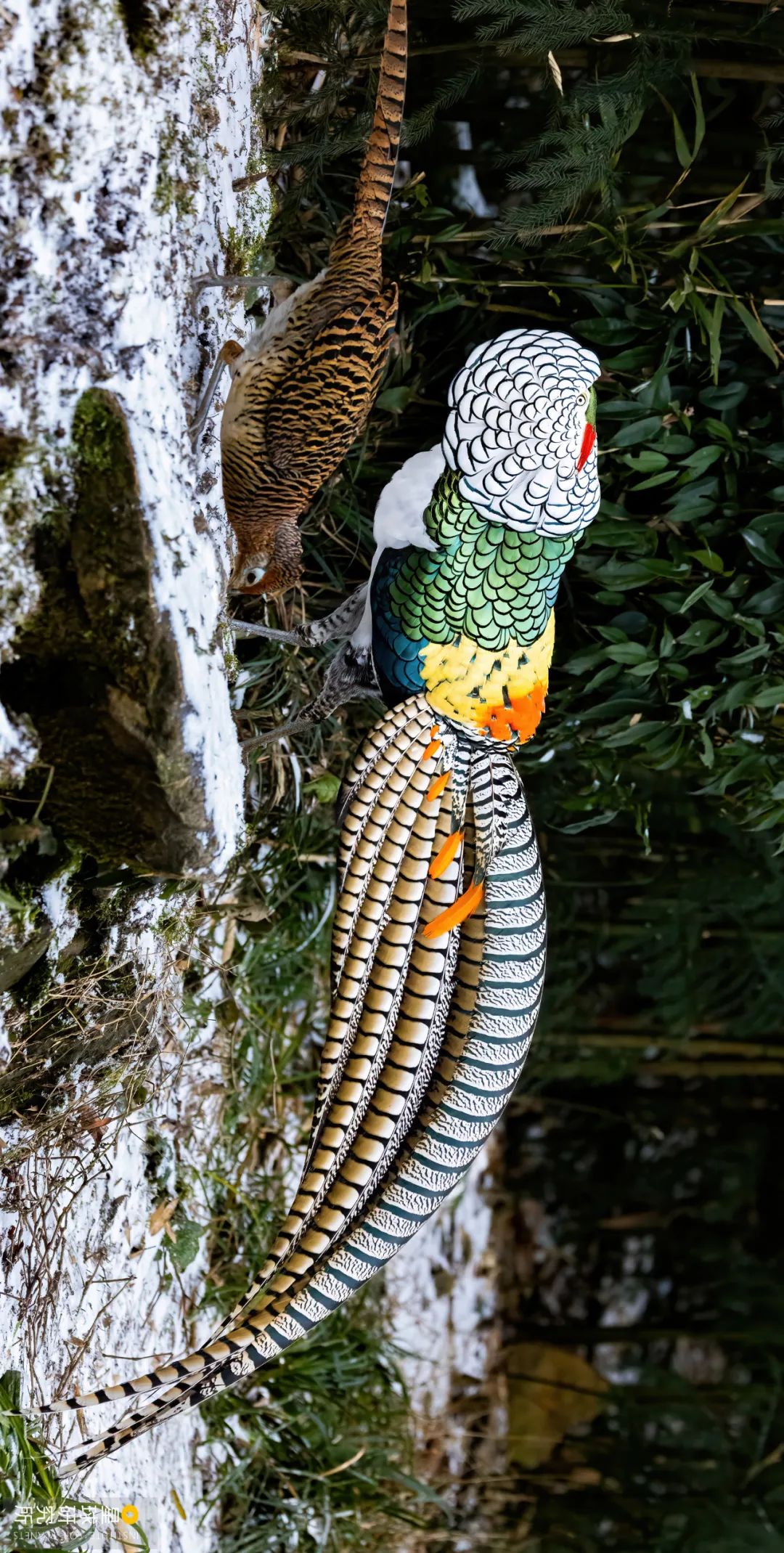 (请横屏观看,求爱心切的白腹锦鸡雄鸟恨不得把它华丽炫目的色彩直接贴在姑娘眼前,摄影师@徐可意)