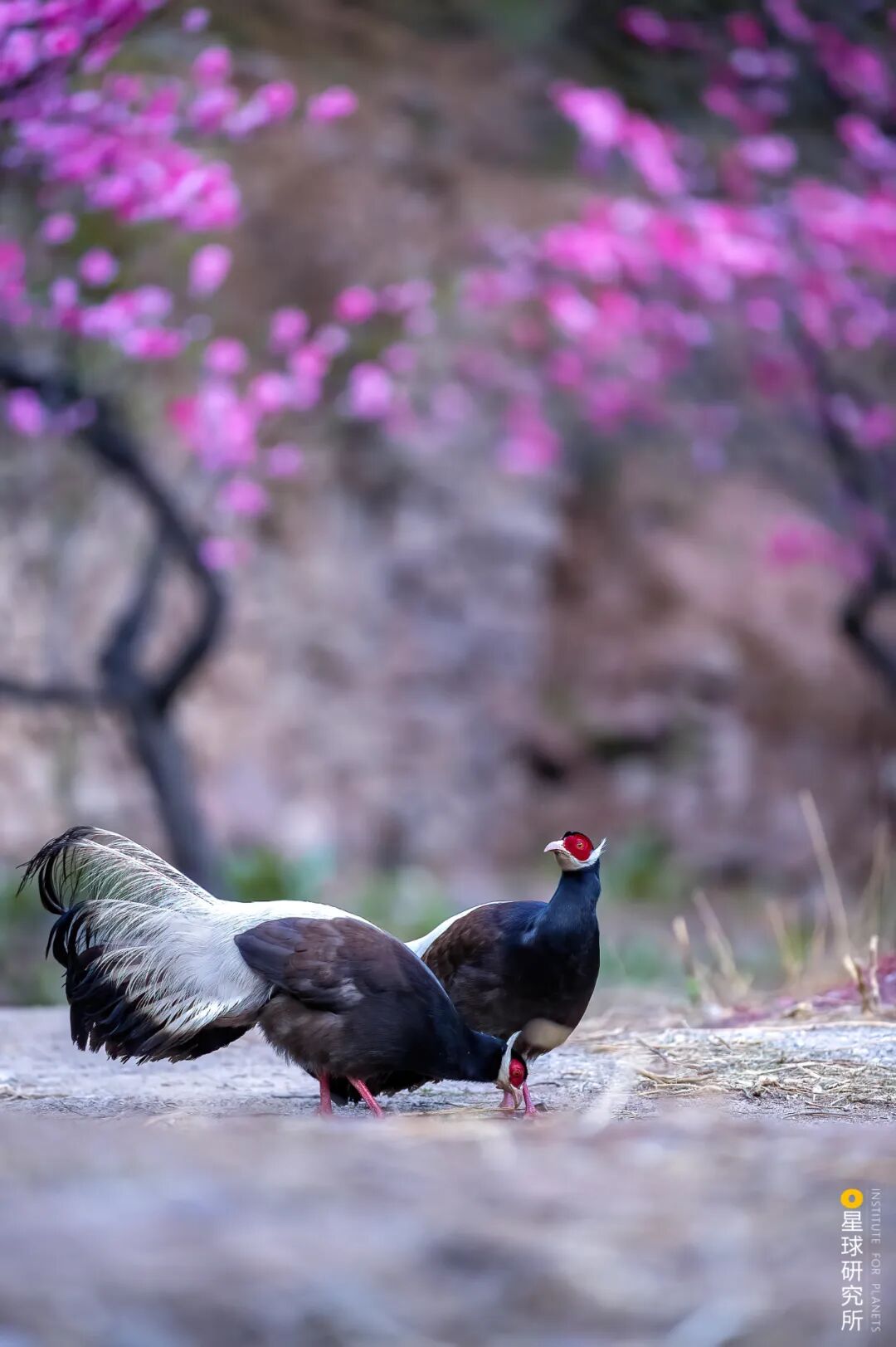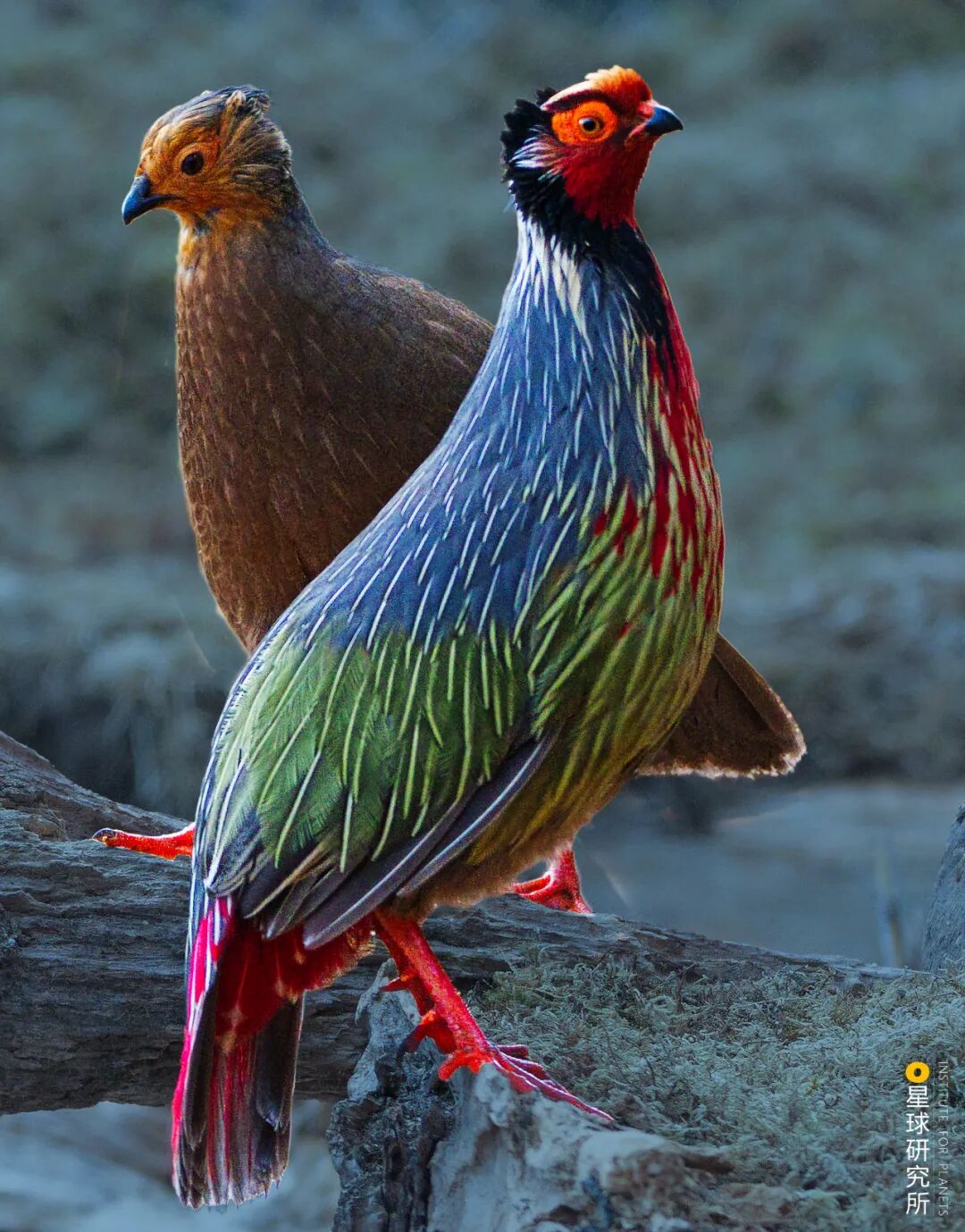 (血雉夫妇,左为雌性,右为雄性;它们热爱人烟稀少的山林,只愿做一对远离尘世的神仙眷侣,摄影师@陶洪)