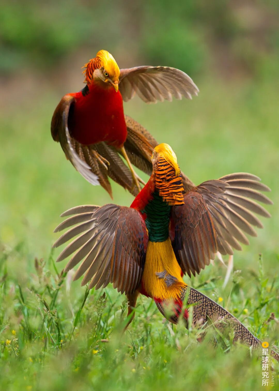 (请横屏观看,在发情期,平日相安无事的红腹锦鸡会大打出手争夺配偶,摄影师@徐林生)