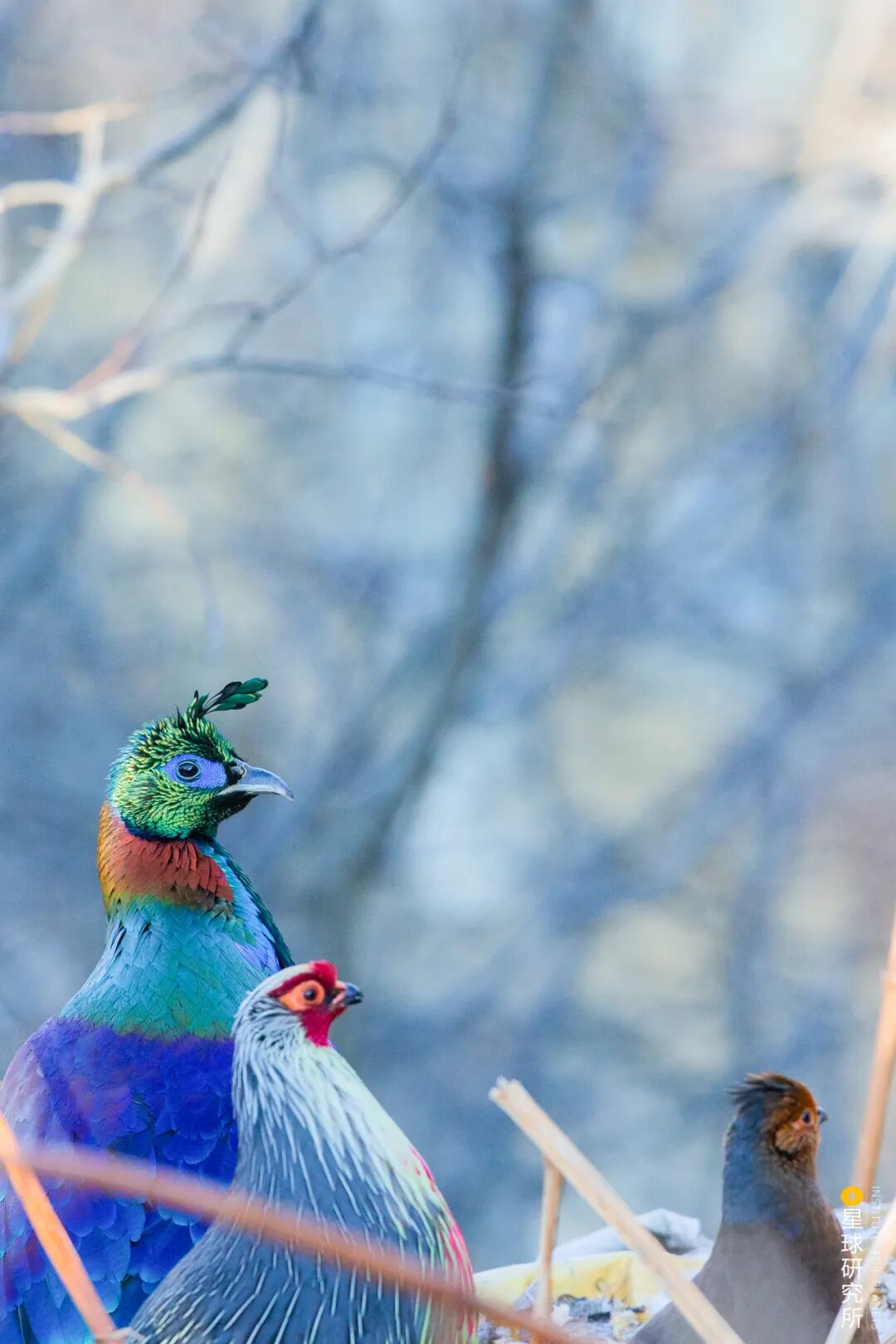 (棕尾虹雉[左]、雄血雉[中]与雌血雉[右]一同出镜,摄影师@刘璐)